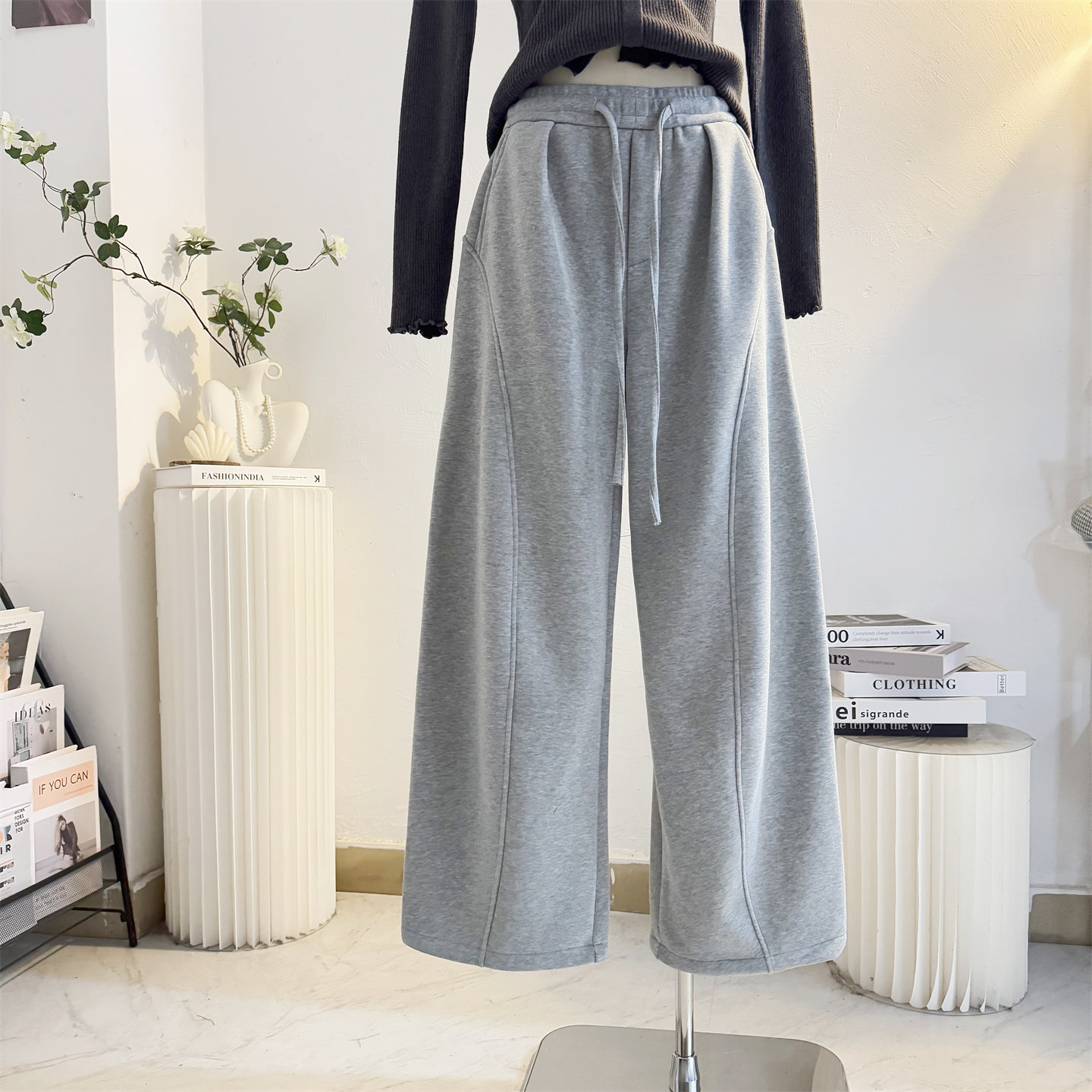 小个子弯刀裤 女2025秋冬宽松阔腿运动裤 休闲裤 深灰色加绒加厚卫裤