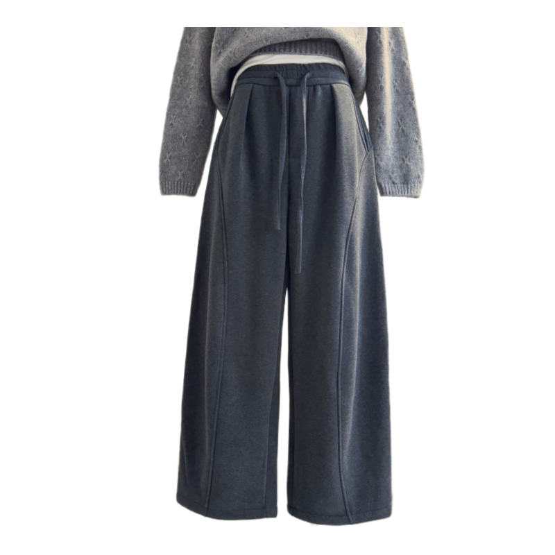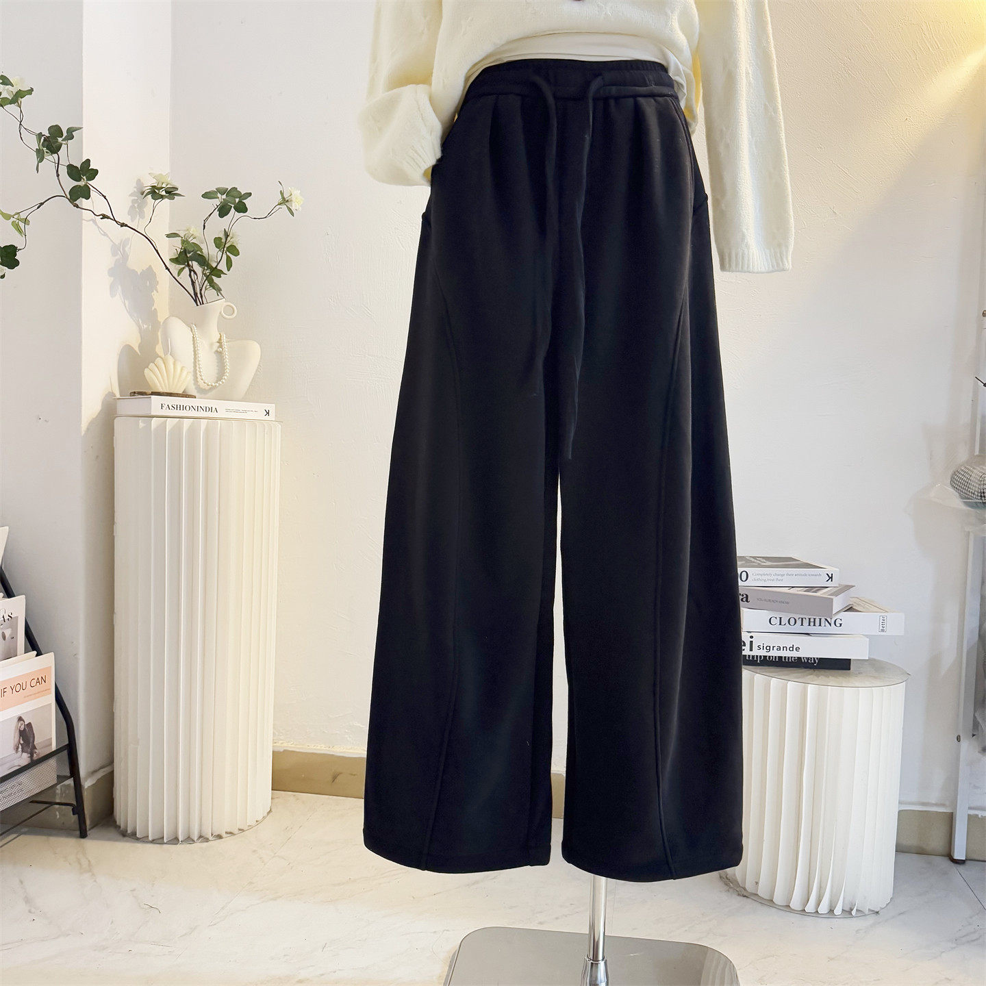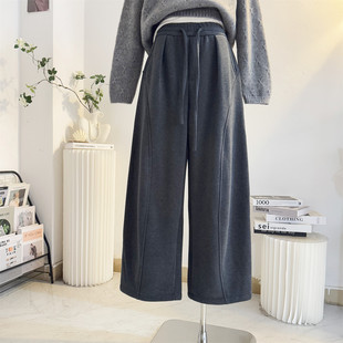 佐梦依加绒加厚休闲裤 弯刀阔腿裤