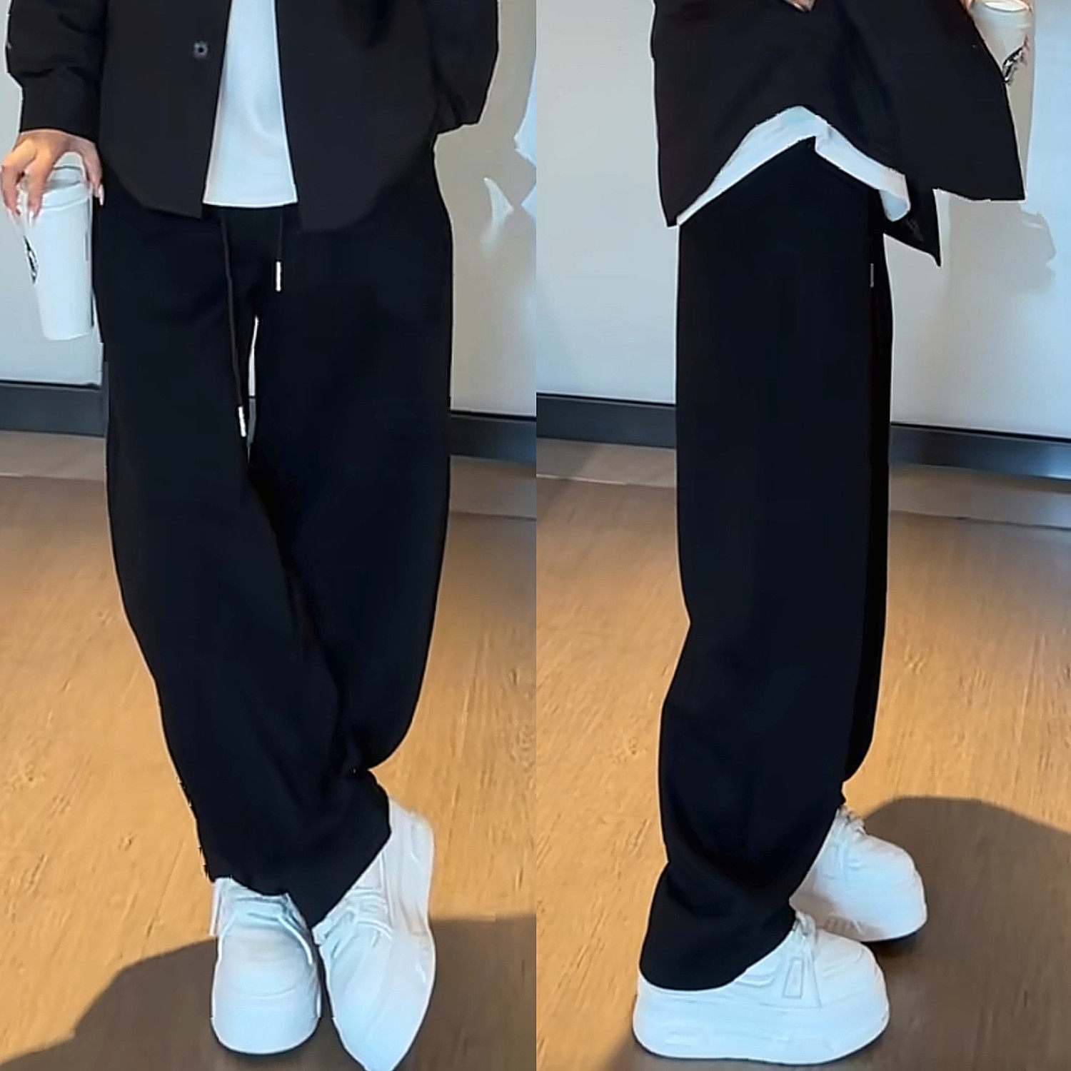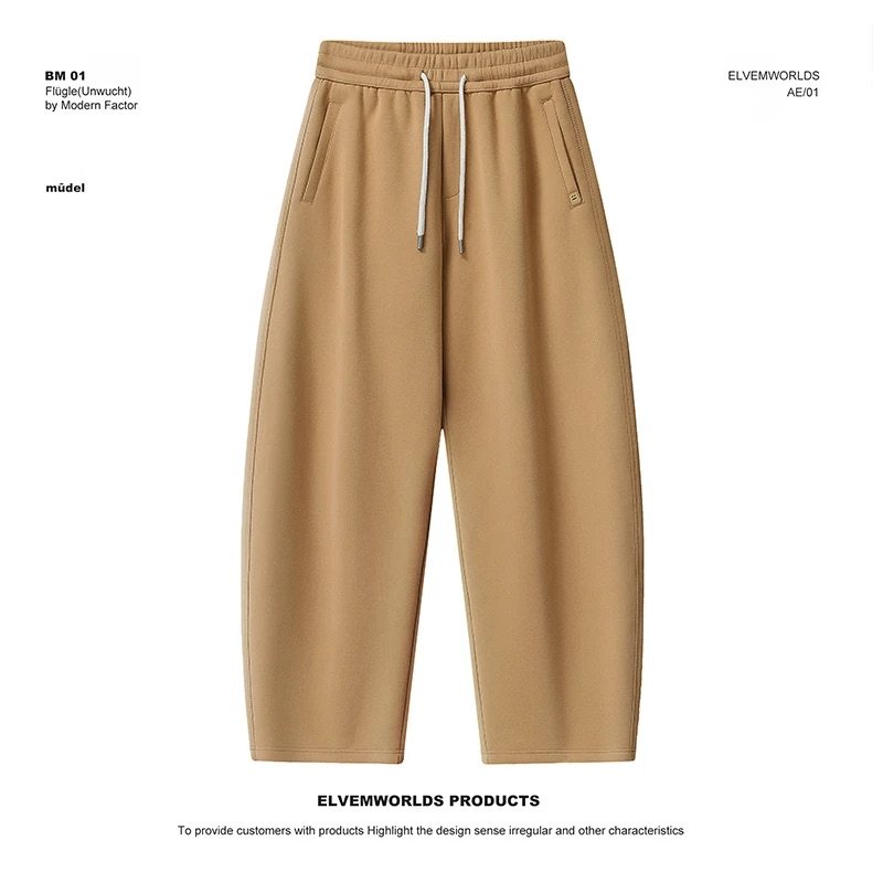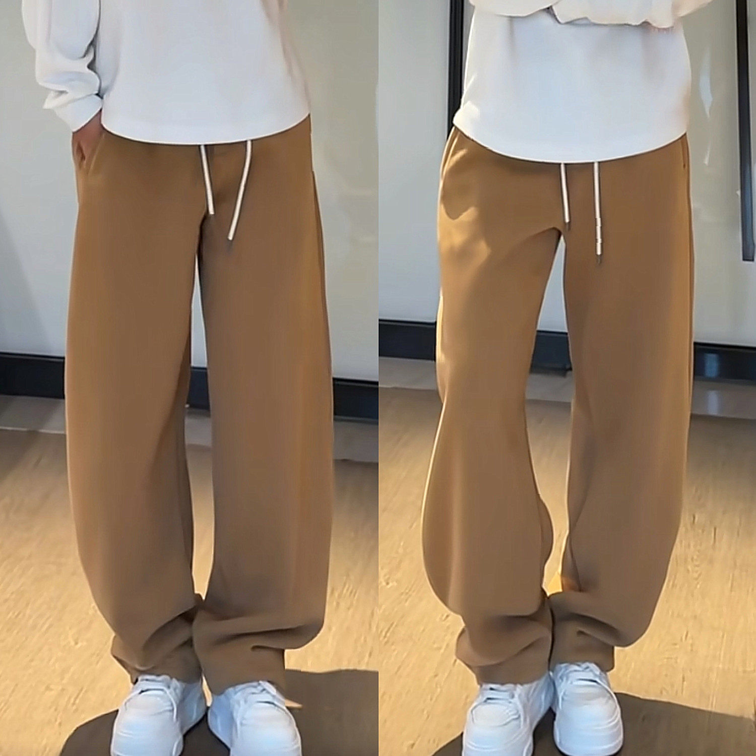 加绒加厚极简纯色休闲裤 百搭宽松直筒卫裤 男女同款 时尚 香蕉裤 冬季