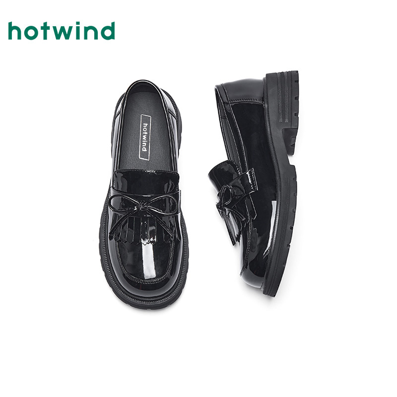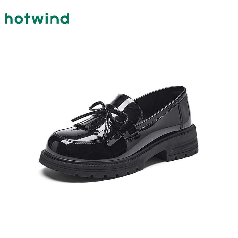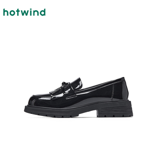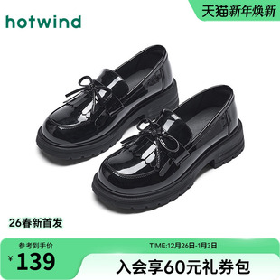女鞋 简约通勤小皮鞋 2025年秋季 粗跟单鞋 配裙子 新款 热风黑色乐福鞋