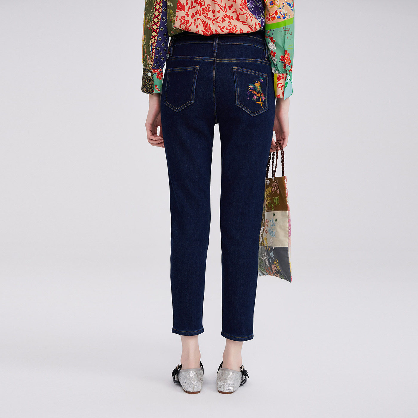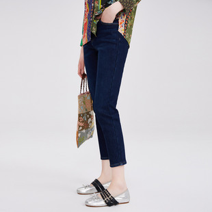 显瘦小脚长裤 渔牌女装 女深蓝色修身 牛仔裤 FGHD6035 2025秋冬新款
