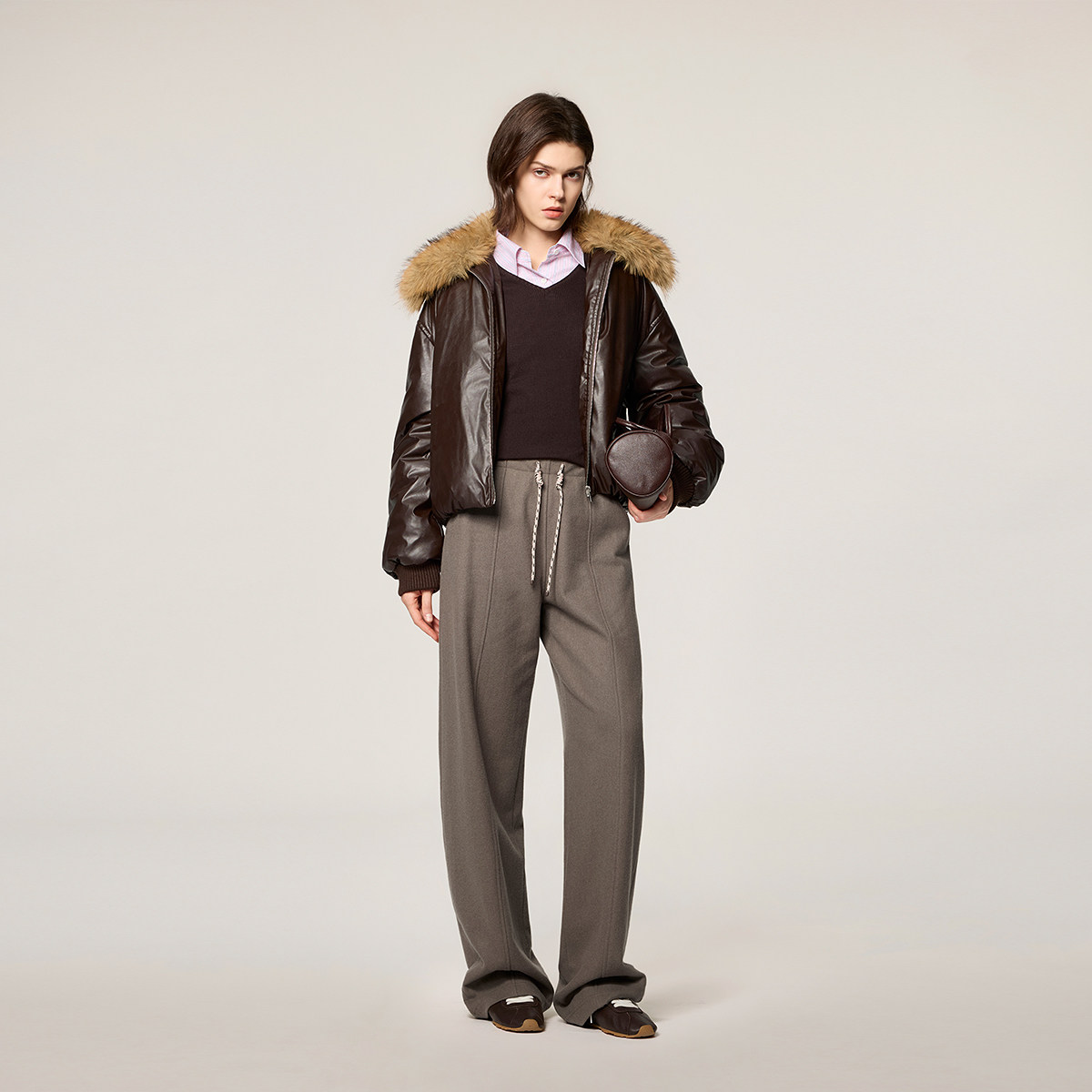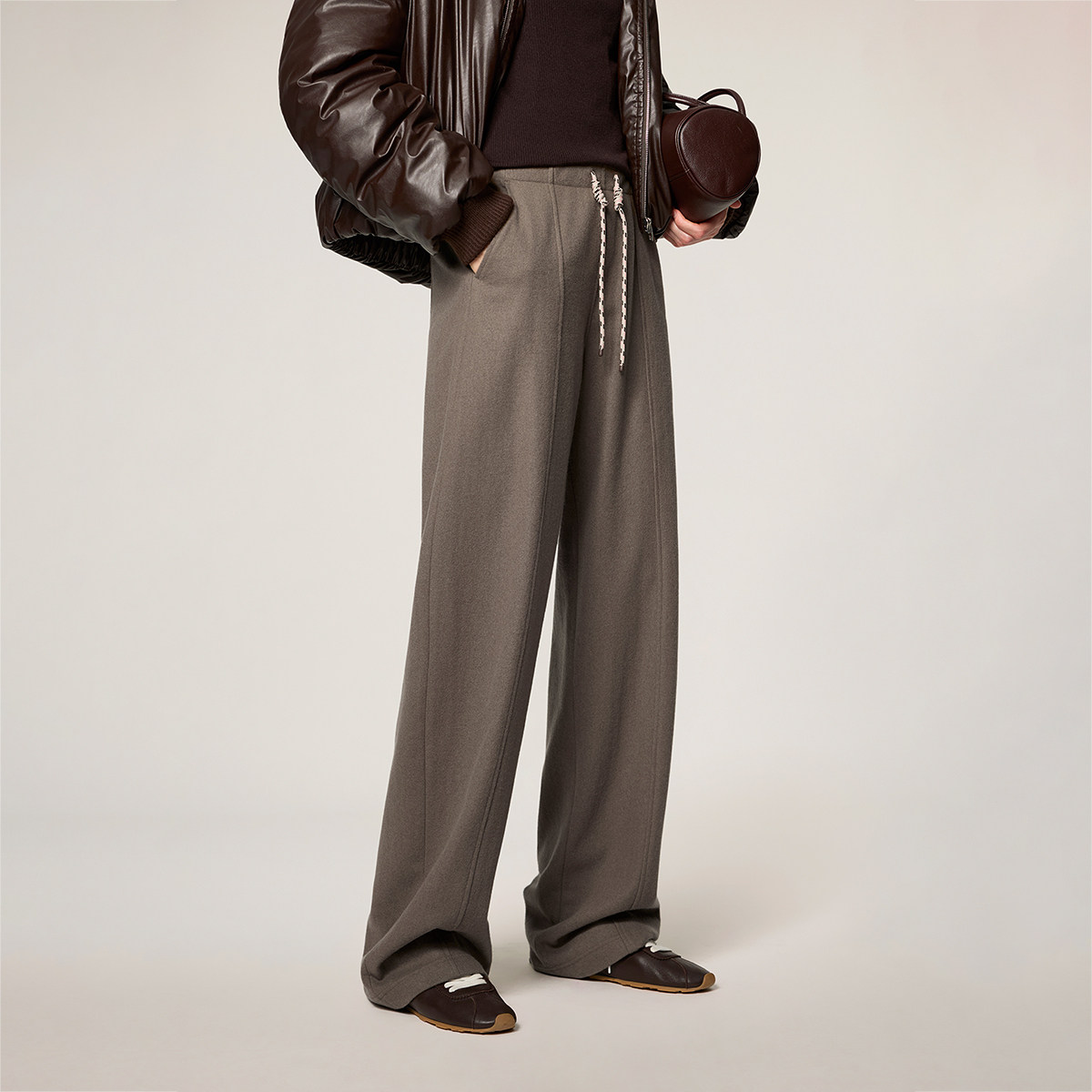 子女抽绳休闲春装 阔腿裤 羊毛法兰绒弯刀裤 OCHIRLY欧时力