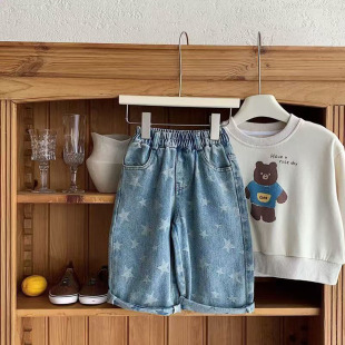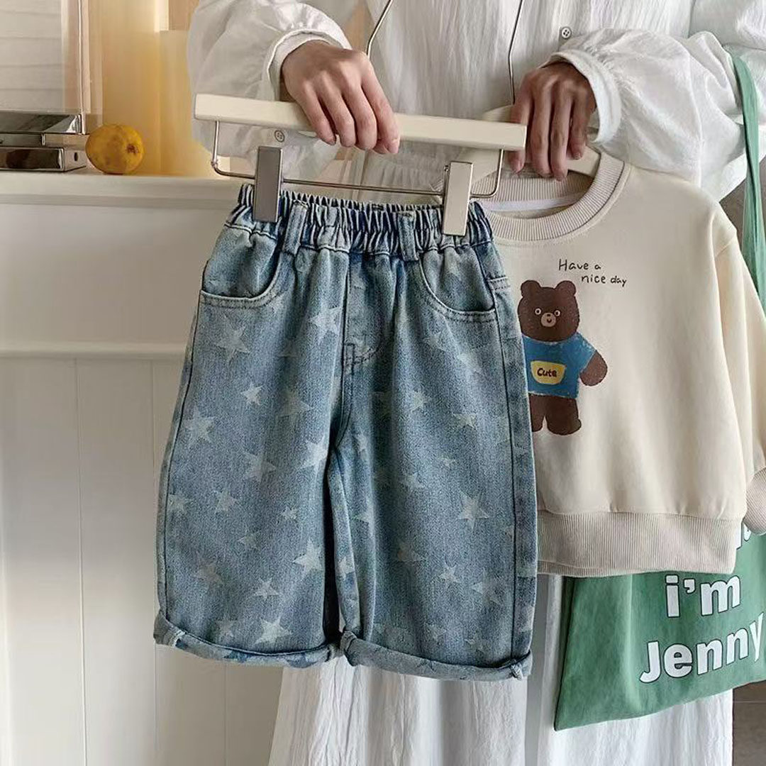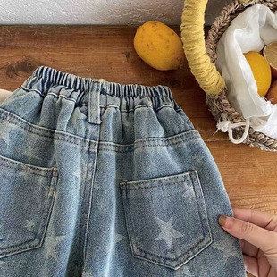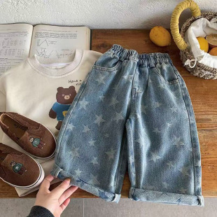 男韩版 潮宝宝休闲裤 2026春季 小童满印长裤 女洋气 新款 儿童软牛仔裤