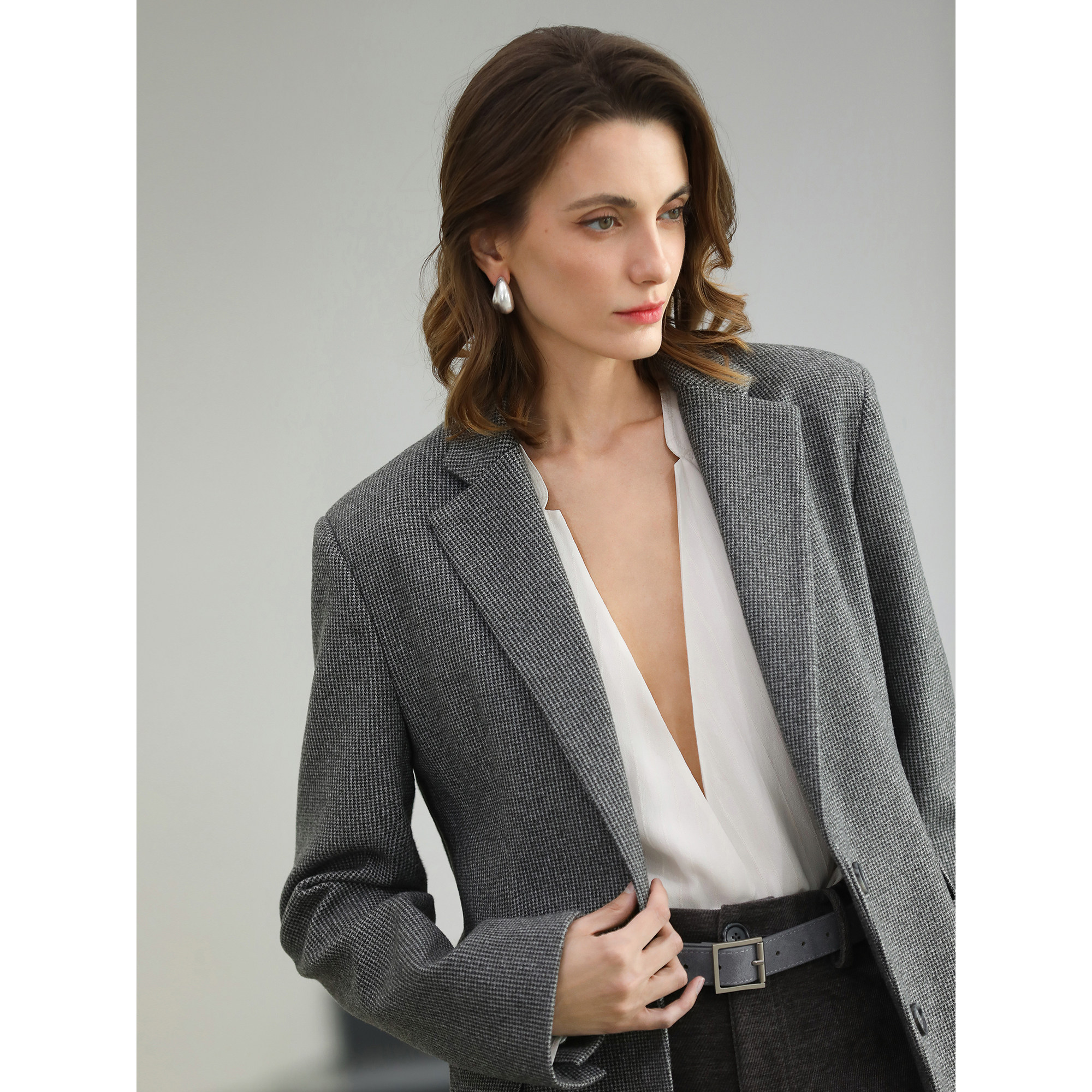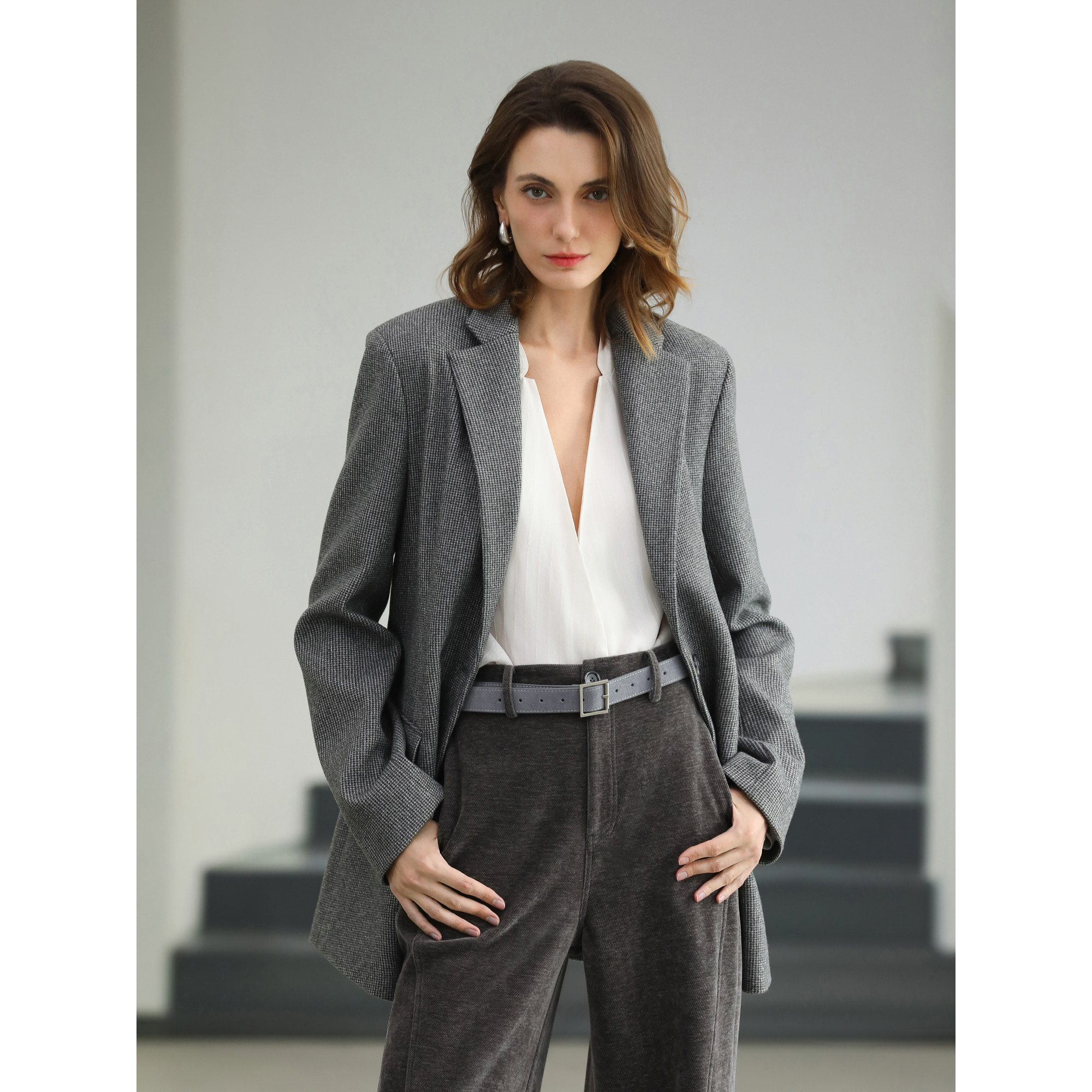 通勤休闲外套SI24 COCOBELLA大牌风复古格子西装 女26春新品