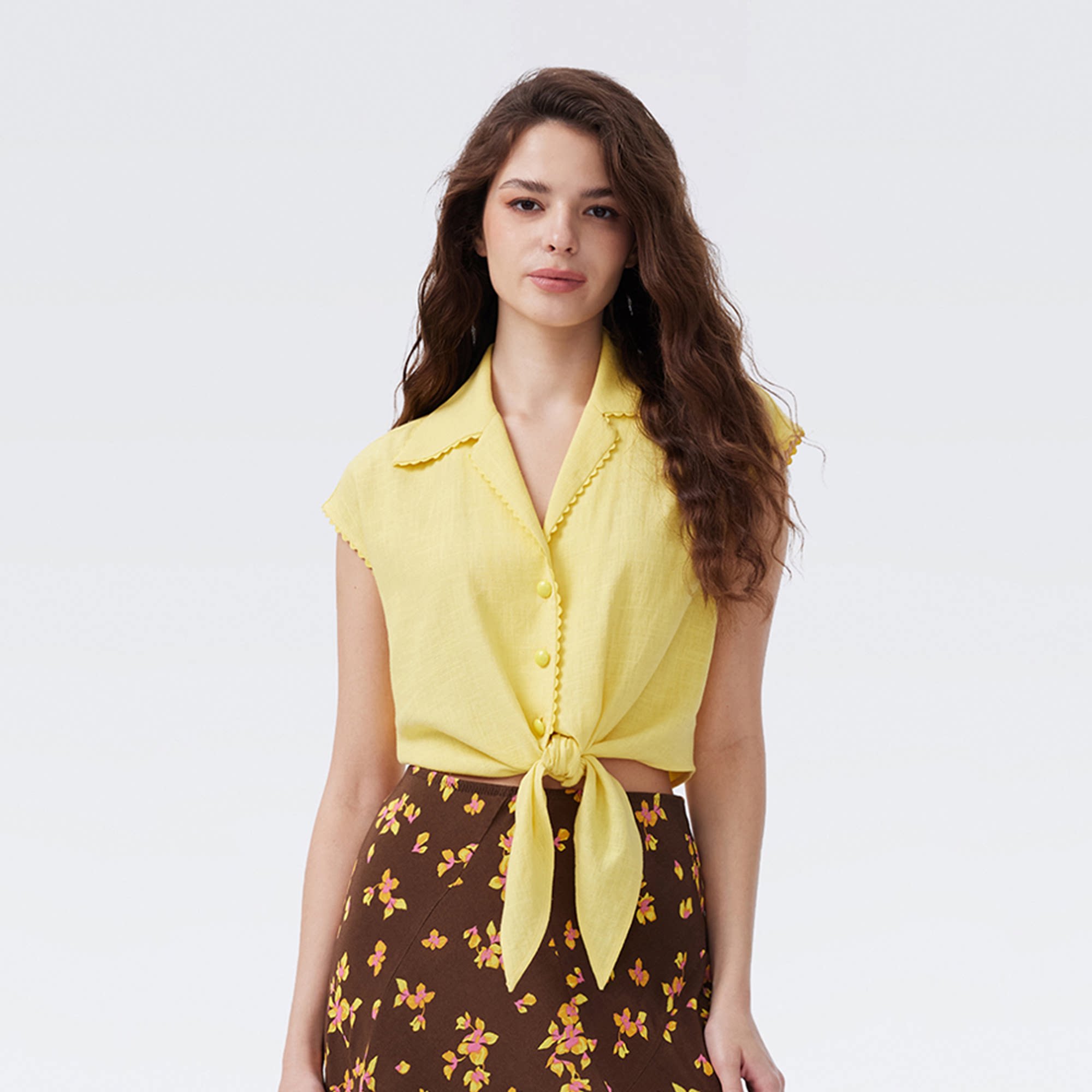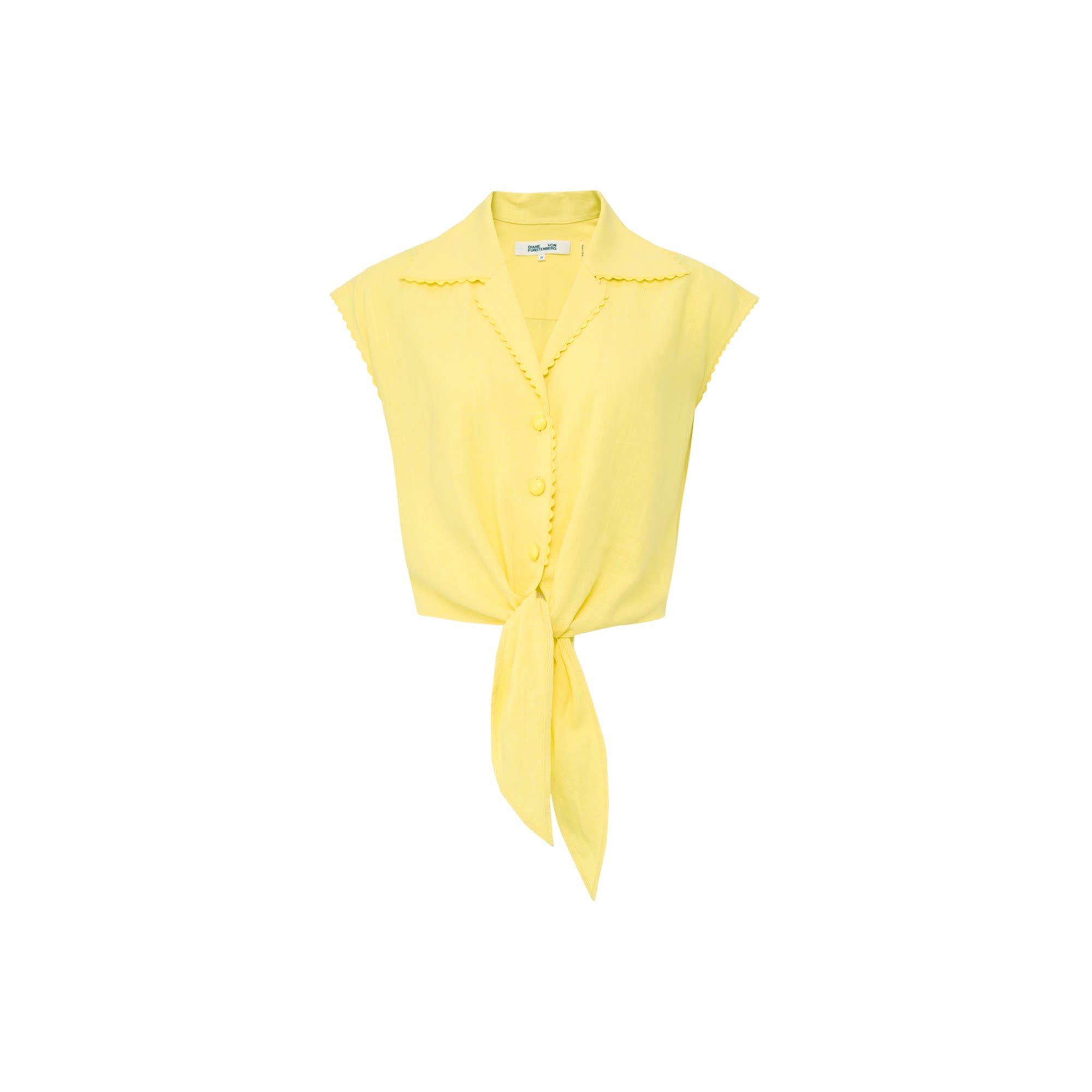 DVF2026春夏新款 上衣BS1U001 翻领柠檬黄色系带收腰搭配感短袖