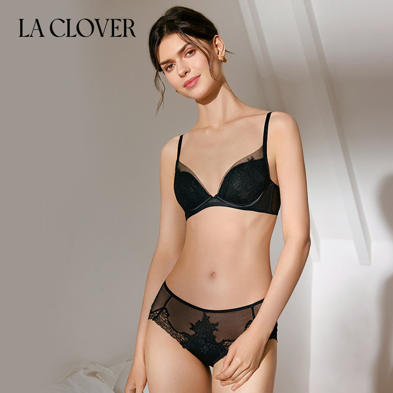文胸内裤 LACLOVER兰卡文无纺布文胸低腰三角裤 春日蜜桃 套装