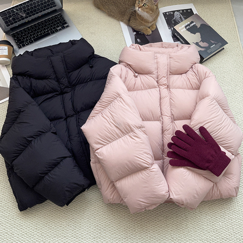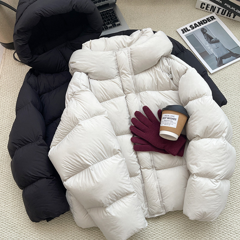 正品 短款 2025新款 爆款 新国标90白鸭绒外出外套黑色连帽 羽绒服女款