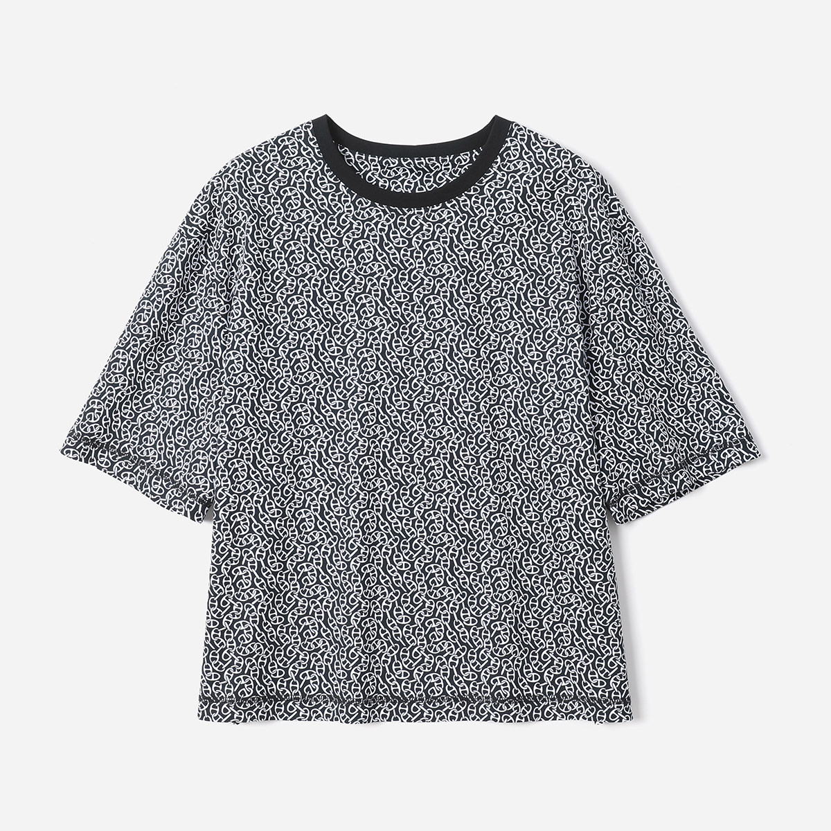 H家迷你猪鼻全身印花匹马棉全棉落肩宽松T恤 茉莉雅集 WTX08196