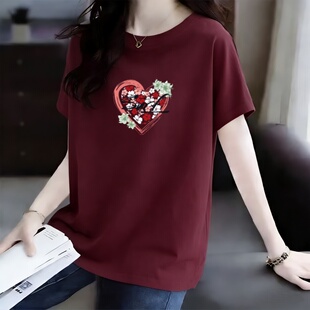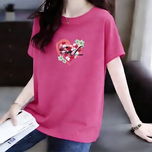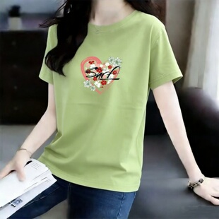 T恤宽松上衣显瘦时尚 圆领韩版 半袖 短袖 2026夏季 女衫 100%纯棉新款