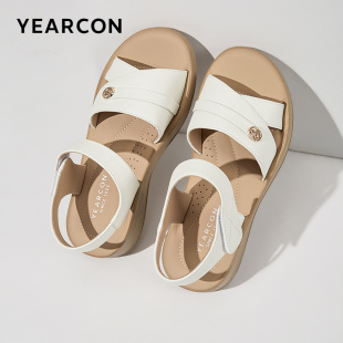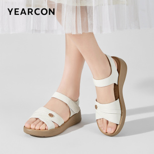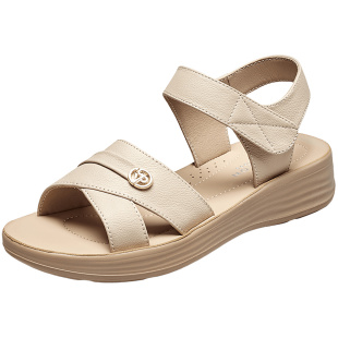 意尔康女鞋 软底外穿中老年母亲老人 女士夏天真皮舒适坡跟妈妈凉鞋