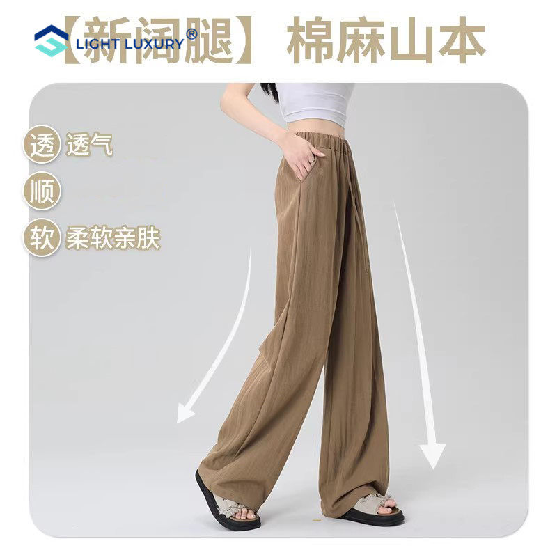 透气舒适棉麻休闲裤 宽松慵懒垂坠感山本裤 子 女2026新款 亚麻阔腿裤