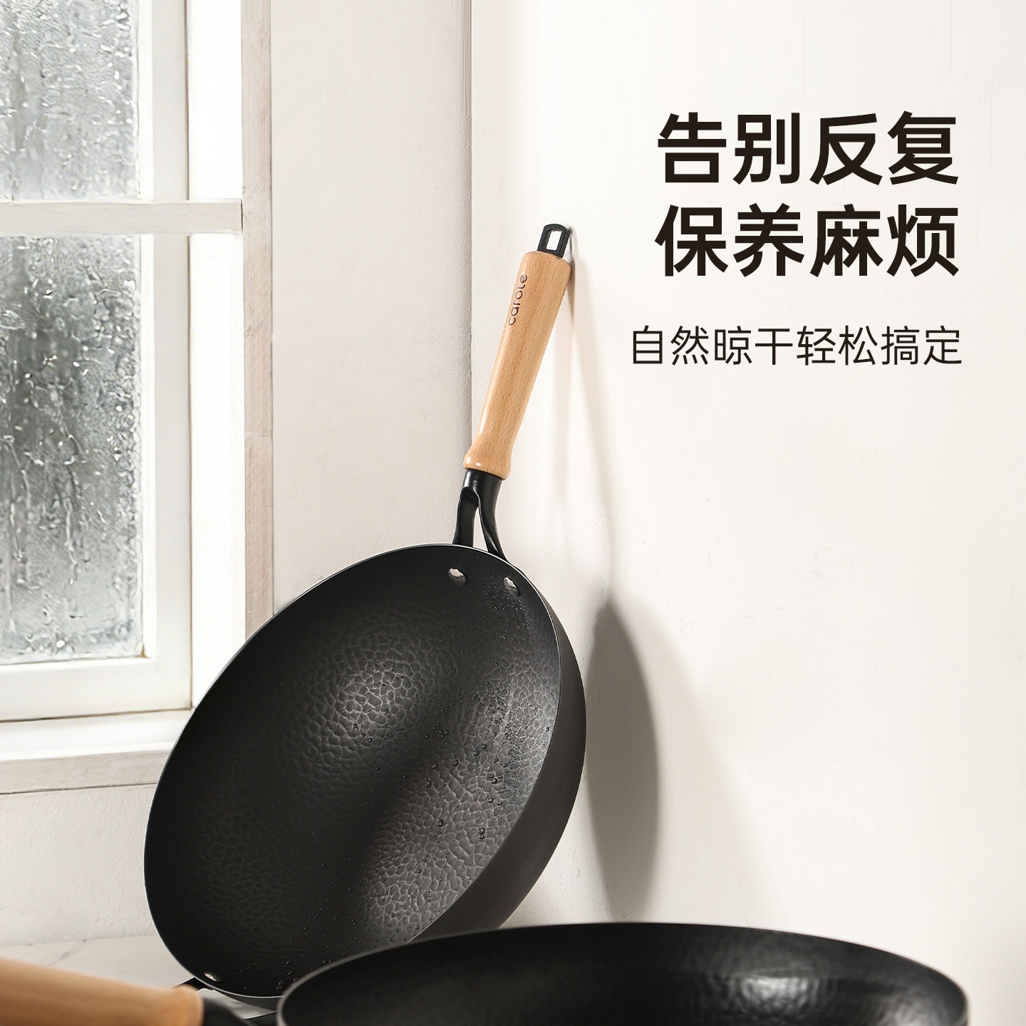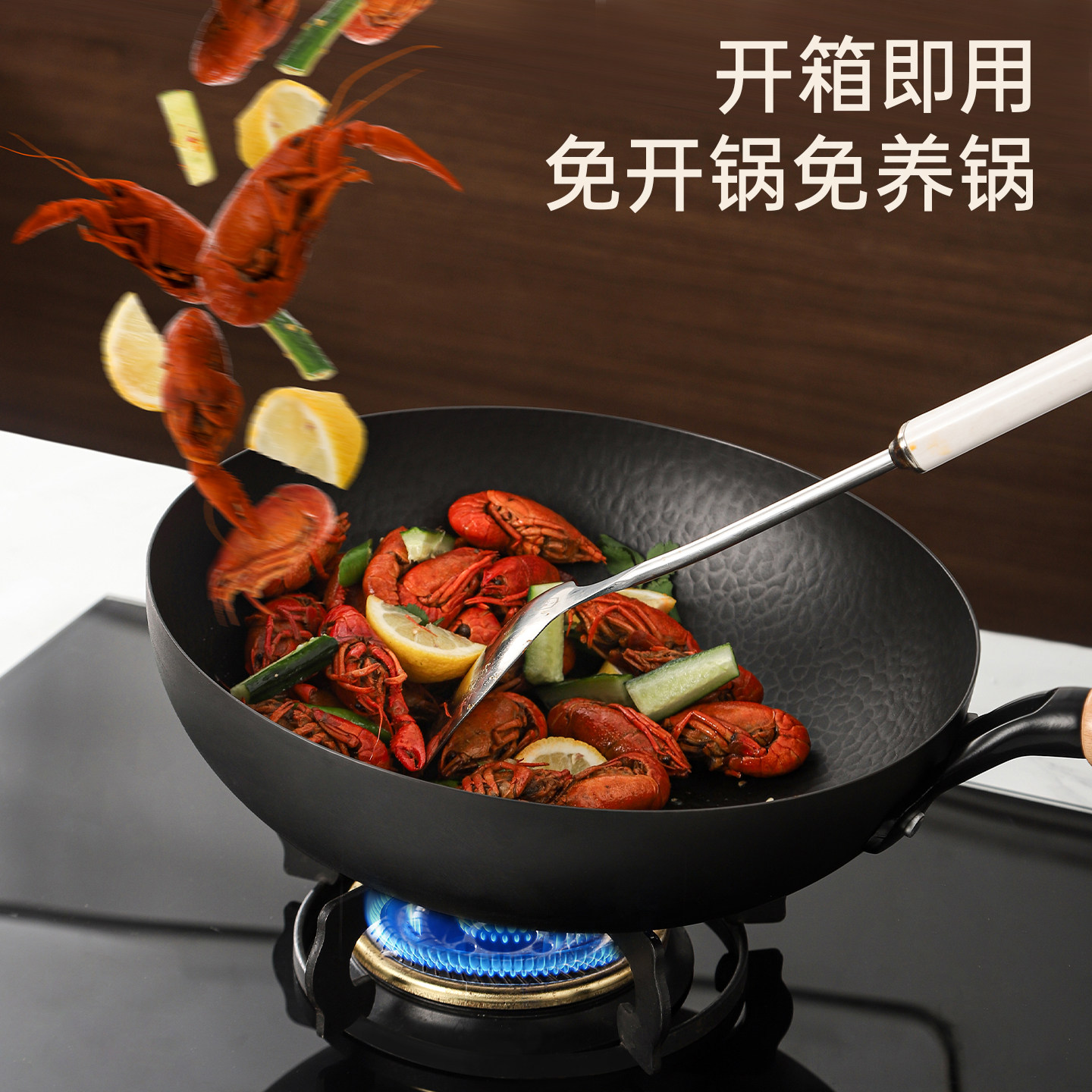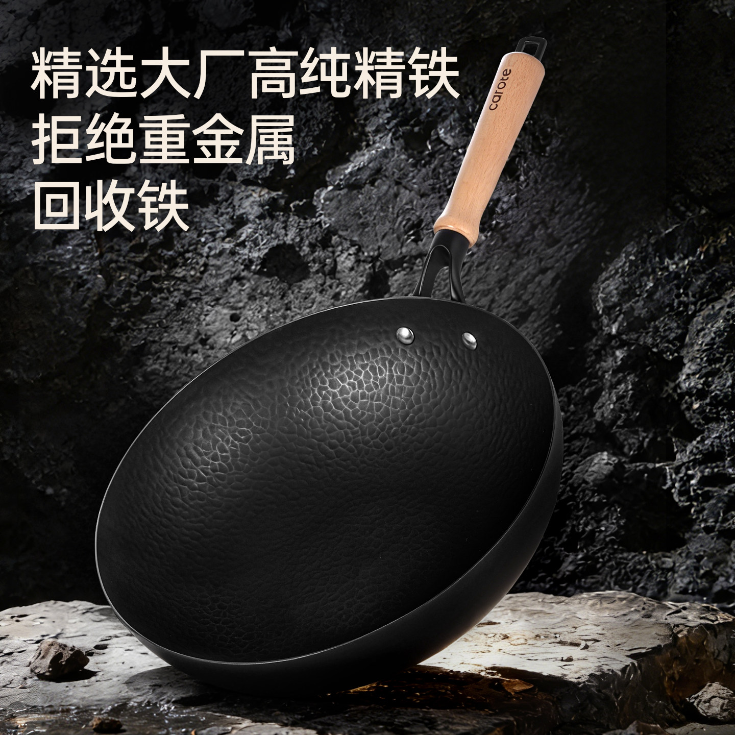卡罗特铁锅家用炒菜锅老式 无涂层炒锅熟铁锅燃气煤气灶专用免开锅