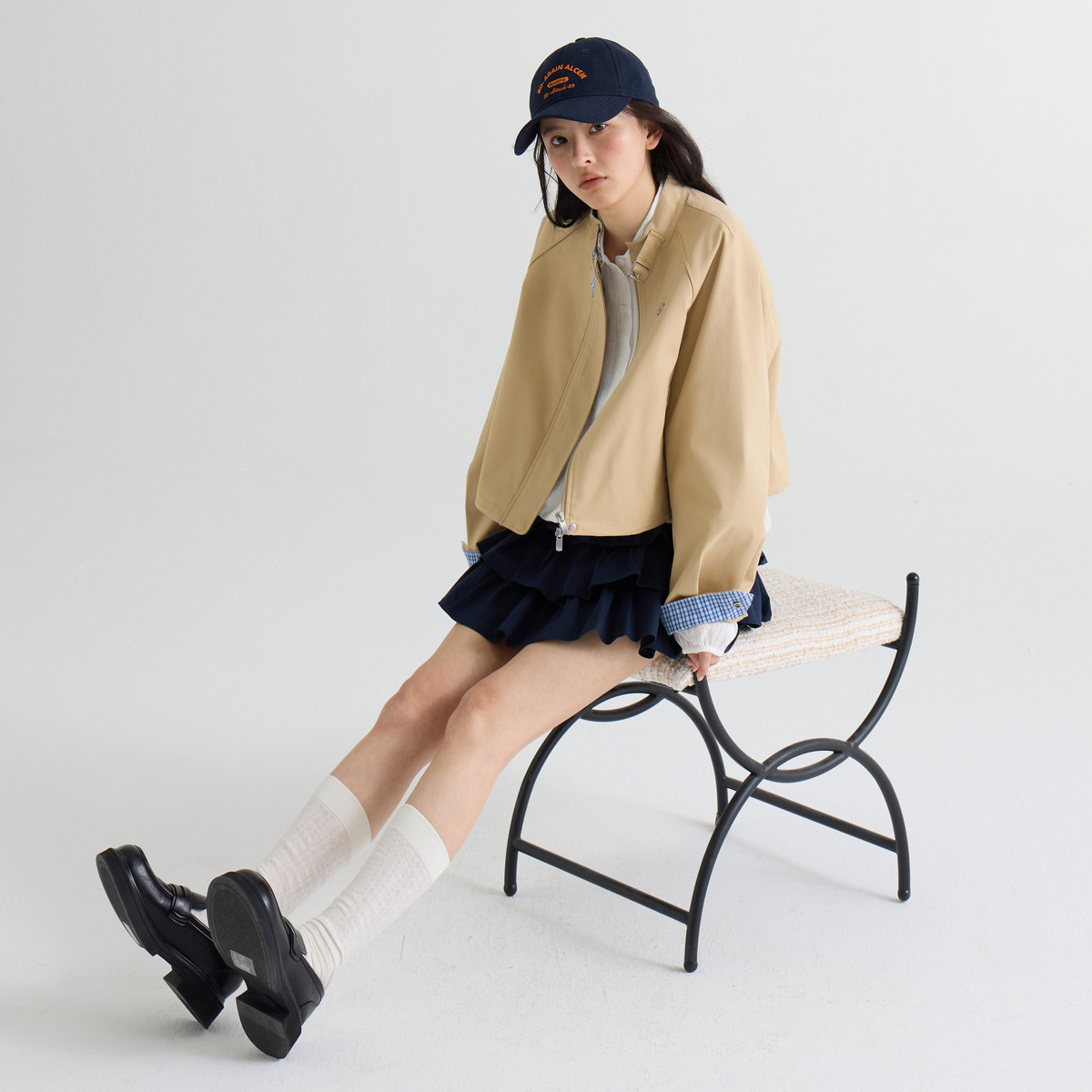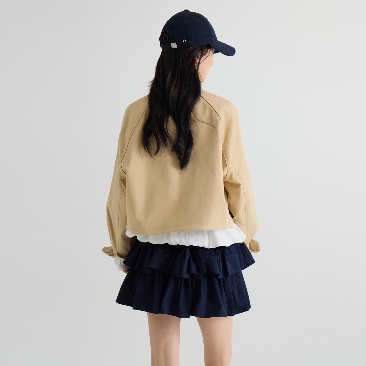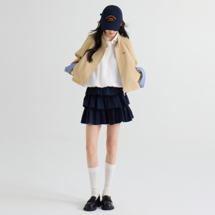 感外套XABA10233 撞色拼接时尚 西町村屋格纹短款 风衣女2026春新款