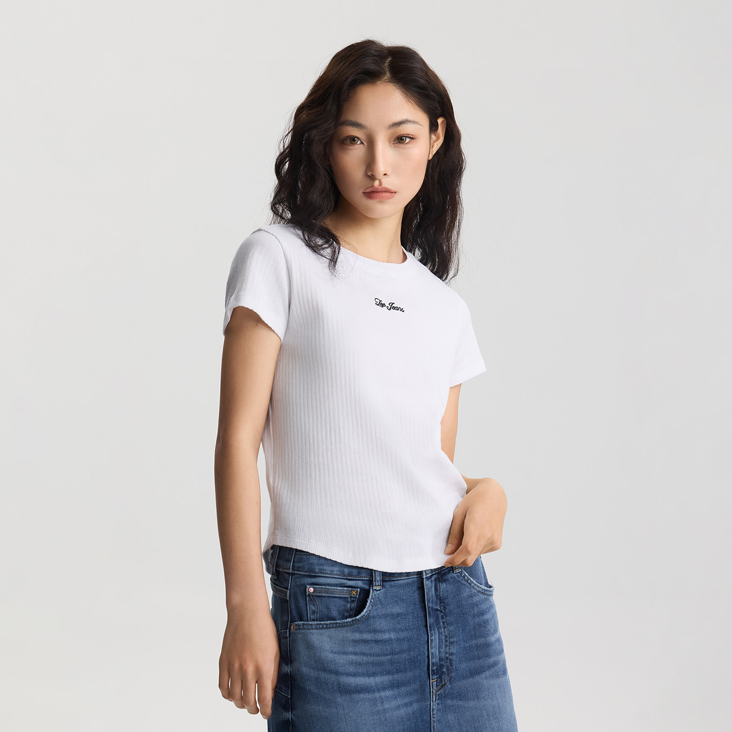 圆领小刺绣Logo设计女短袖 Lee商场同款 版 修身 T恤休闲潮 26春夏新品