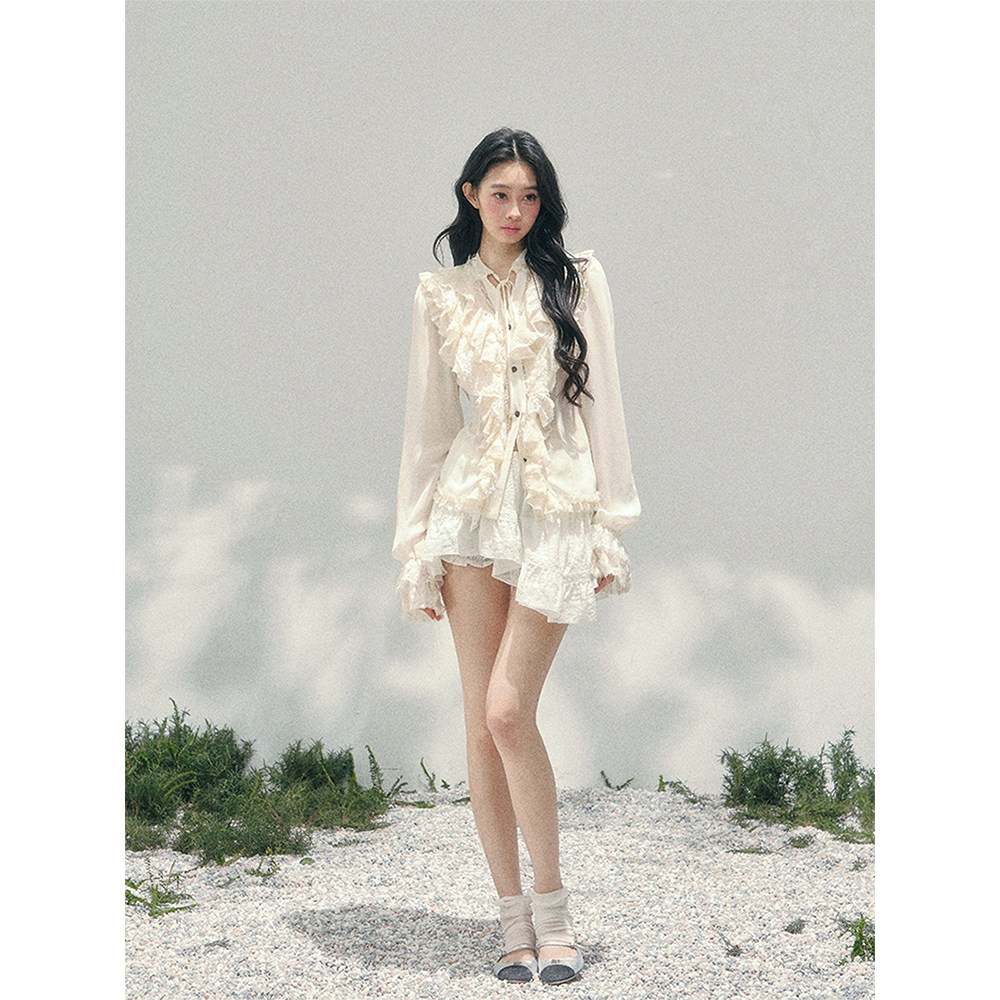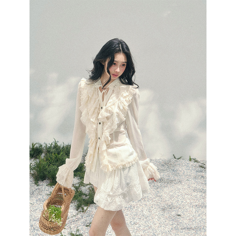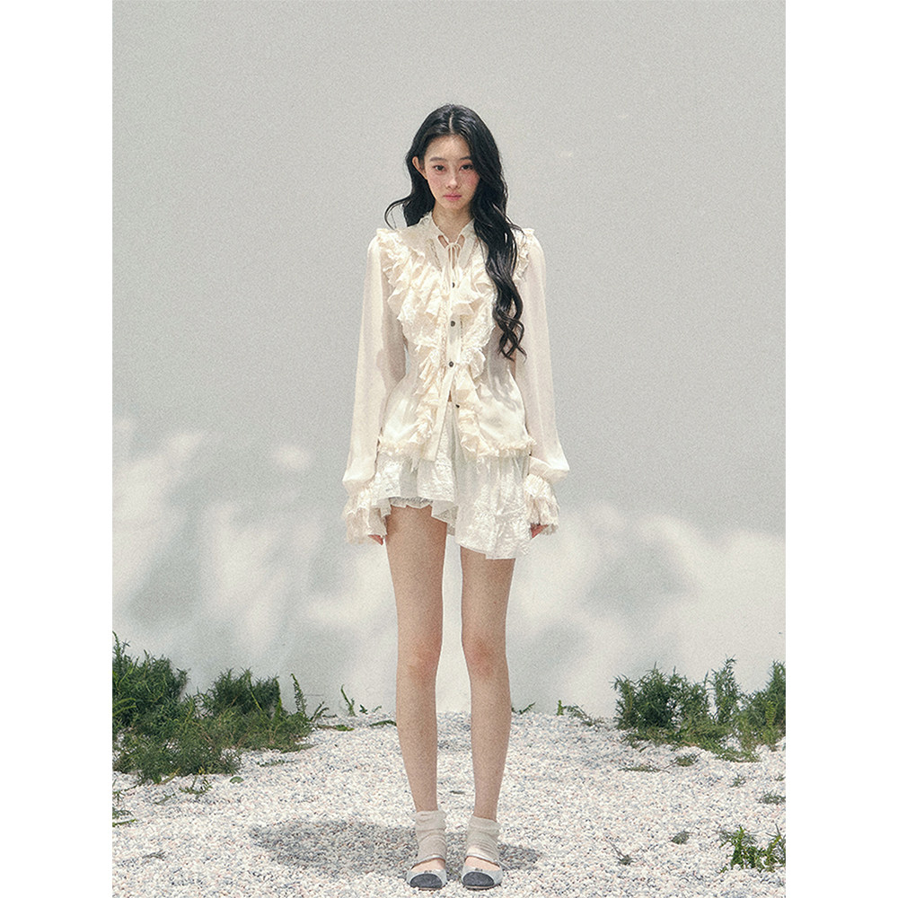 回忆 女春季 温度 宫廷风荷叶边蕾丝衬衫 上衣 %法式 AOMALM少也眼
