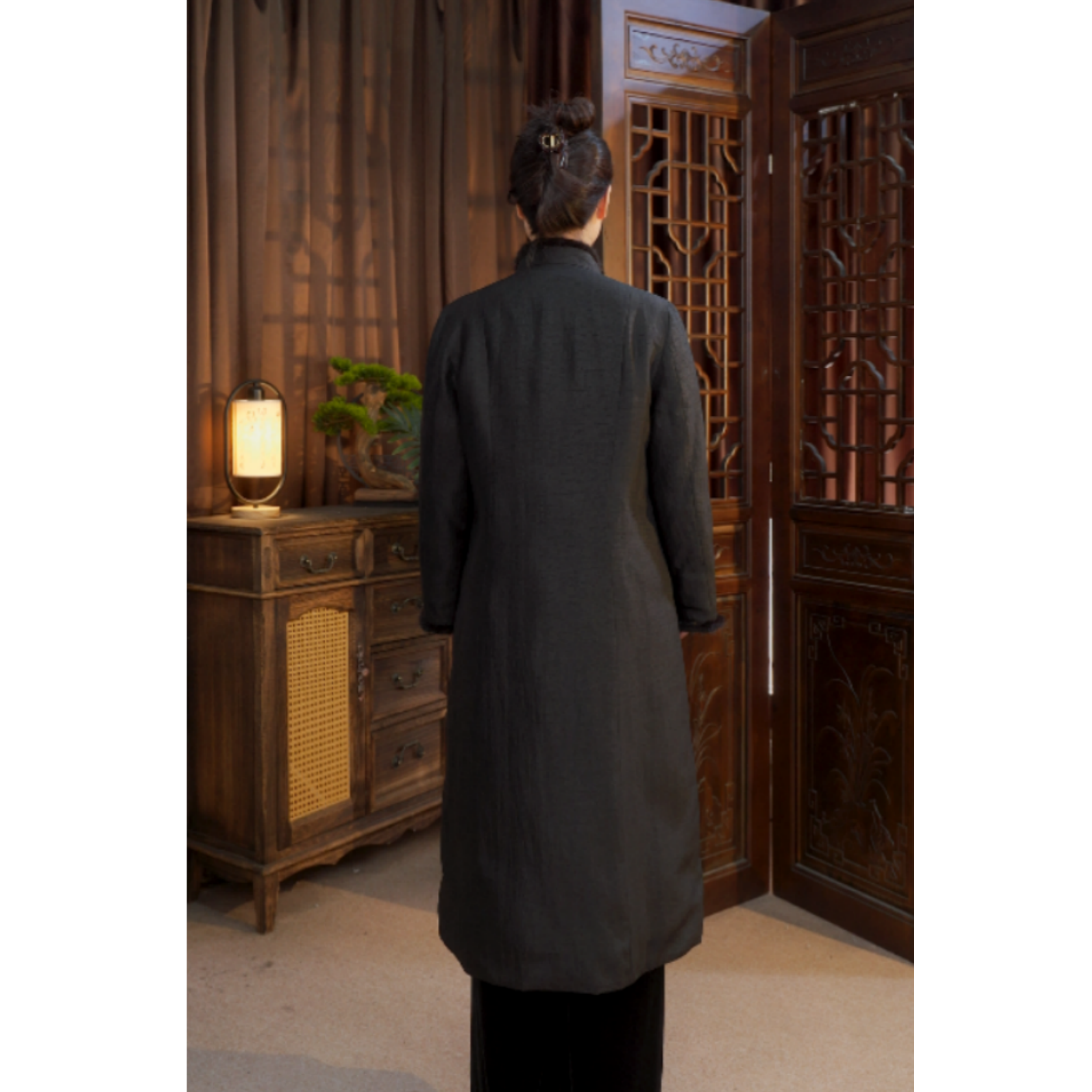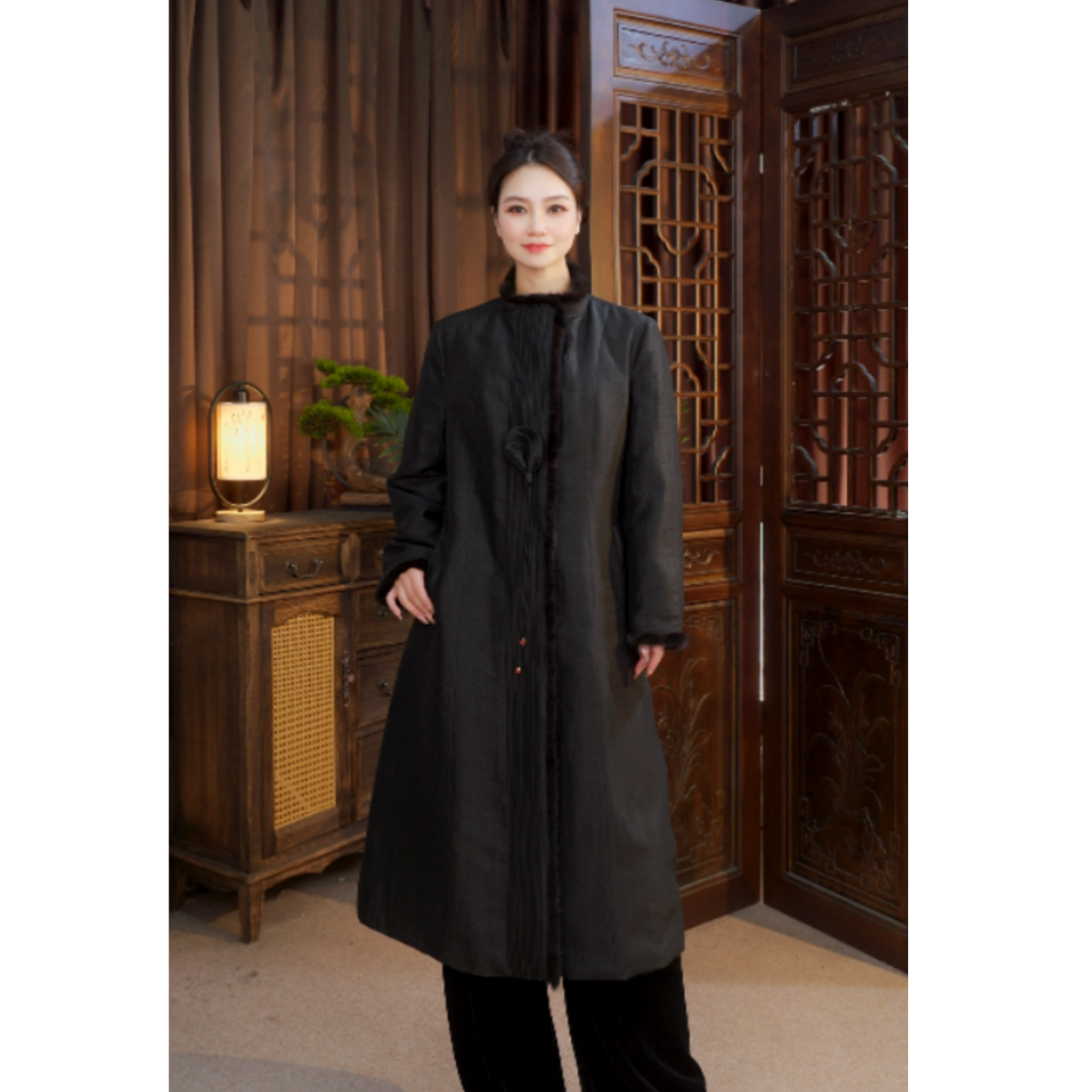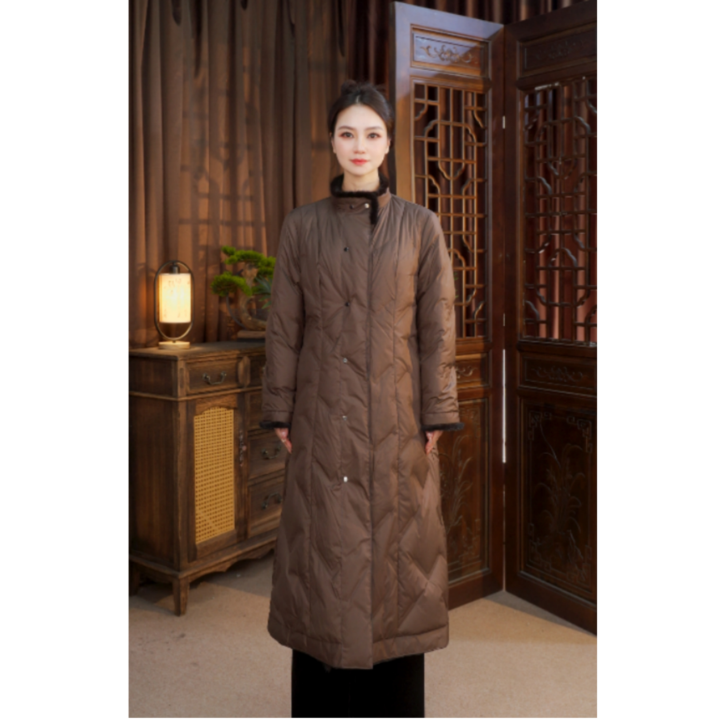 气质显瘦双面双穿中长款 2025新款 鹅绒服5061 香云纱95白鹅绒