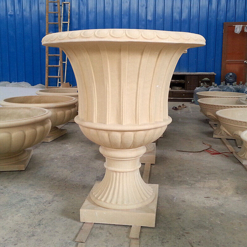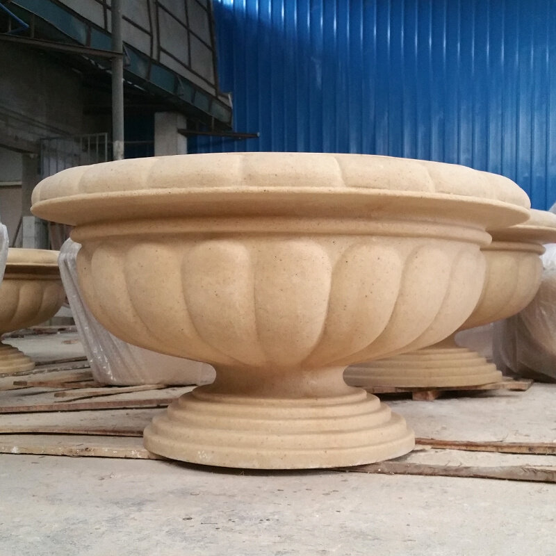 新款 饰件定制 GRC水泥人造砂岩花盆雕刻玻璃钢水钵雕塑城市园林装