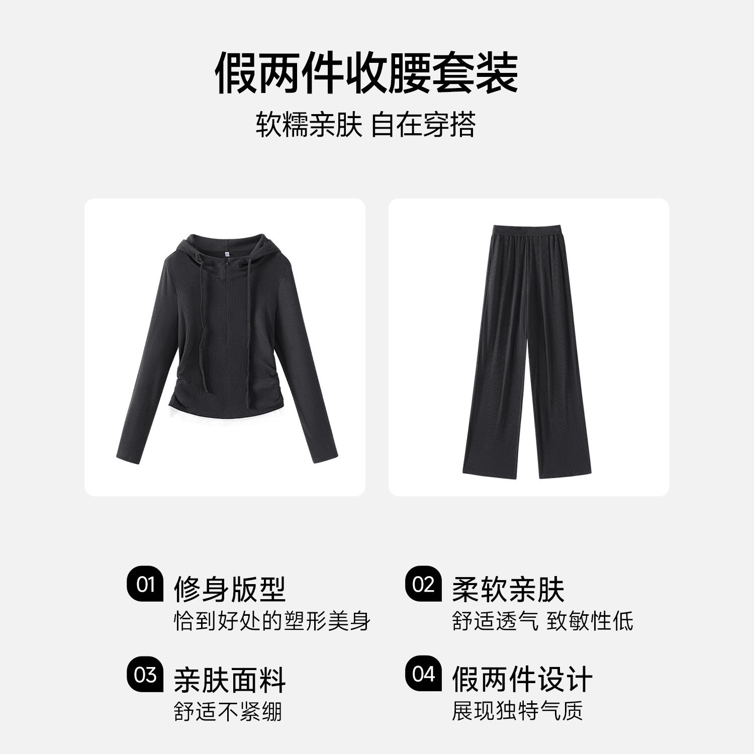 轻薄透气两件装 班尼路S&K系列黑色假两件运动休闲套装 女春夏新款