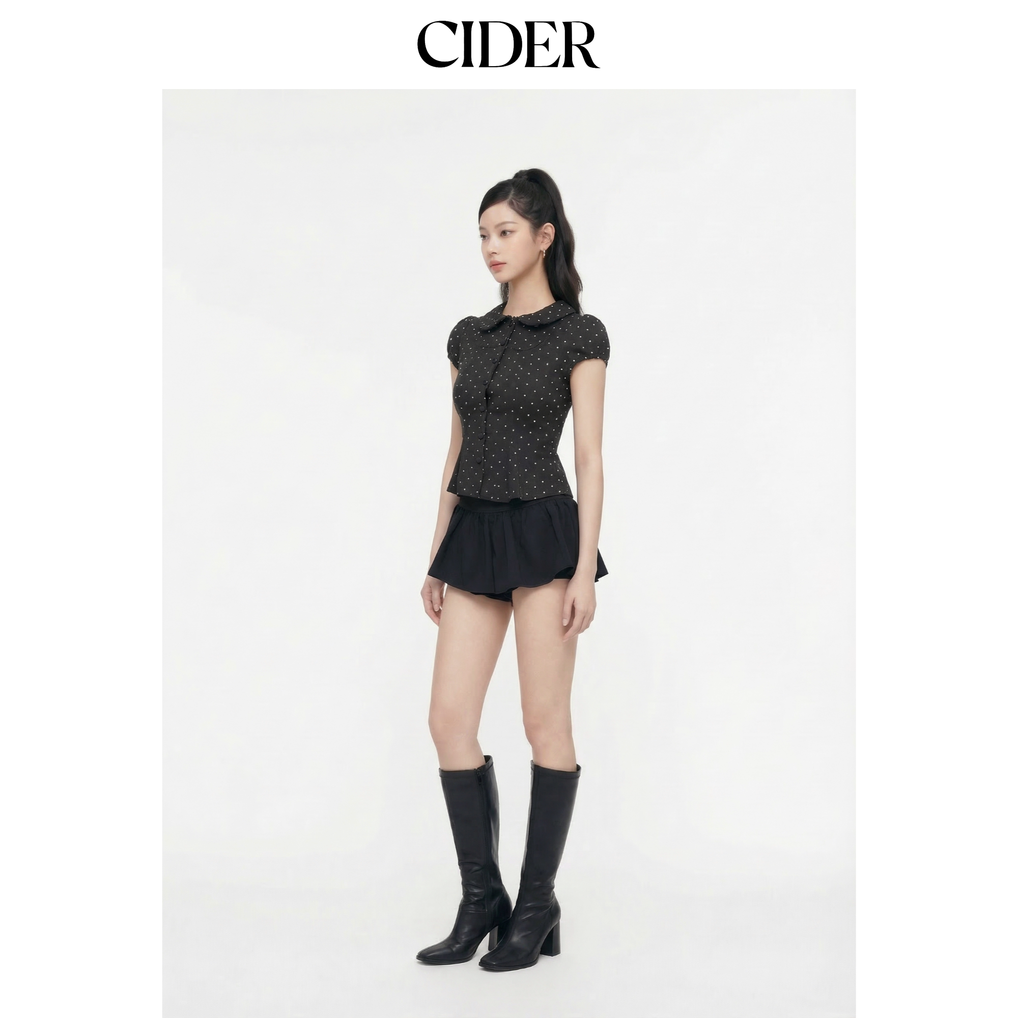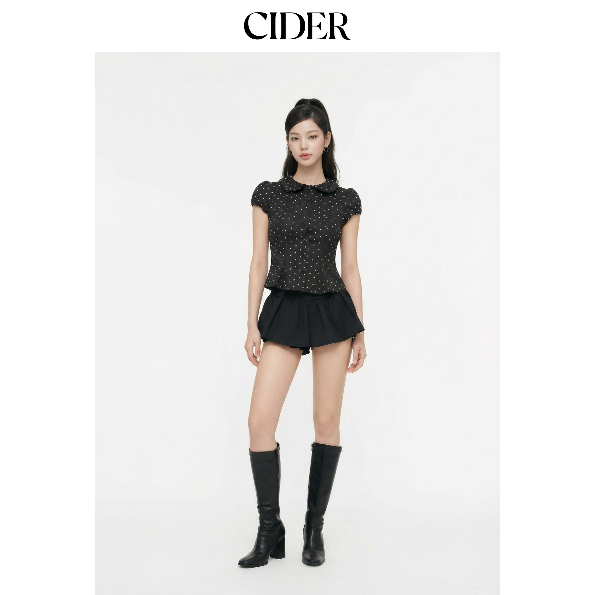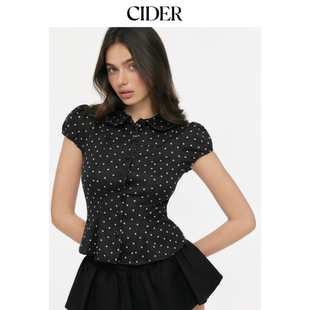 CIDER娃娃领波点彼得潘领泡泡袖 上衣115158390 短款