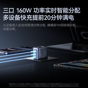 Anker安克Prime智显充Pro三口160W充电器PD3.1快充typec充电头氮化镓适用苹果17笔记本平板iPad