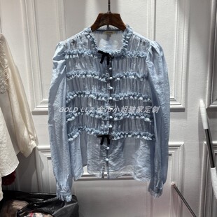 蝴蝶结花边领温柔风长袖 复古拼接木耳边衬衫 上衣 女装 南油2026新品