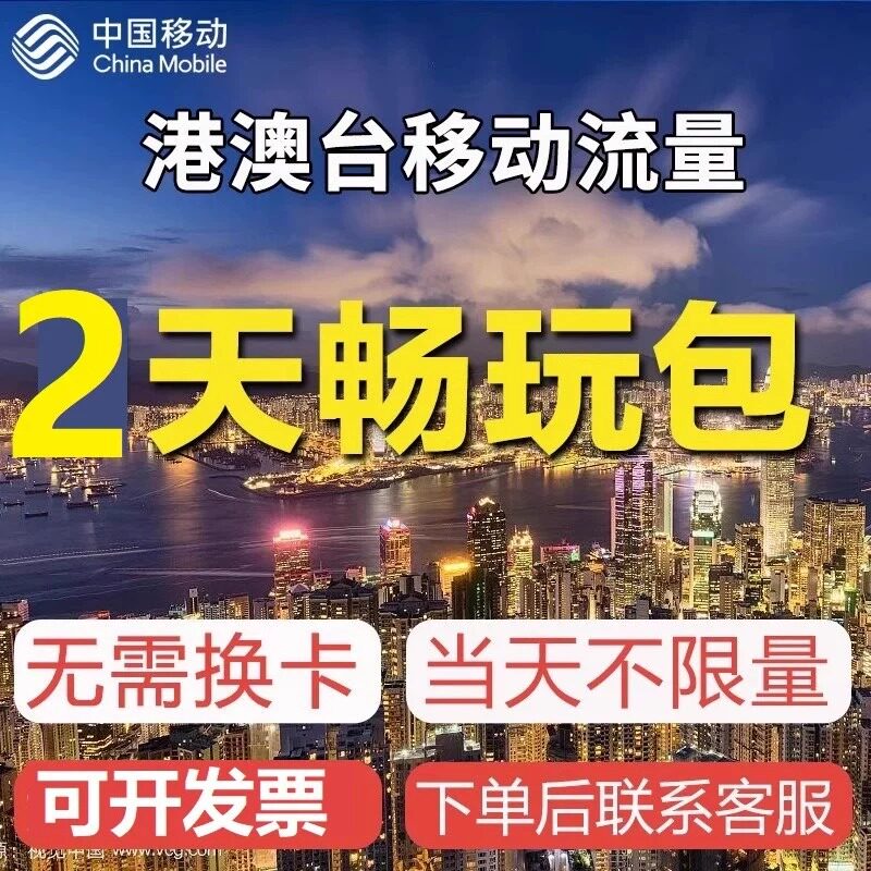 中国移动国际漫游香港澳门2日流量充值2天畅玩包境外流量无需换卡