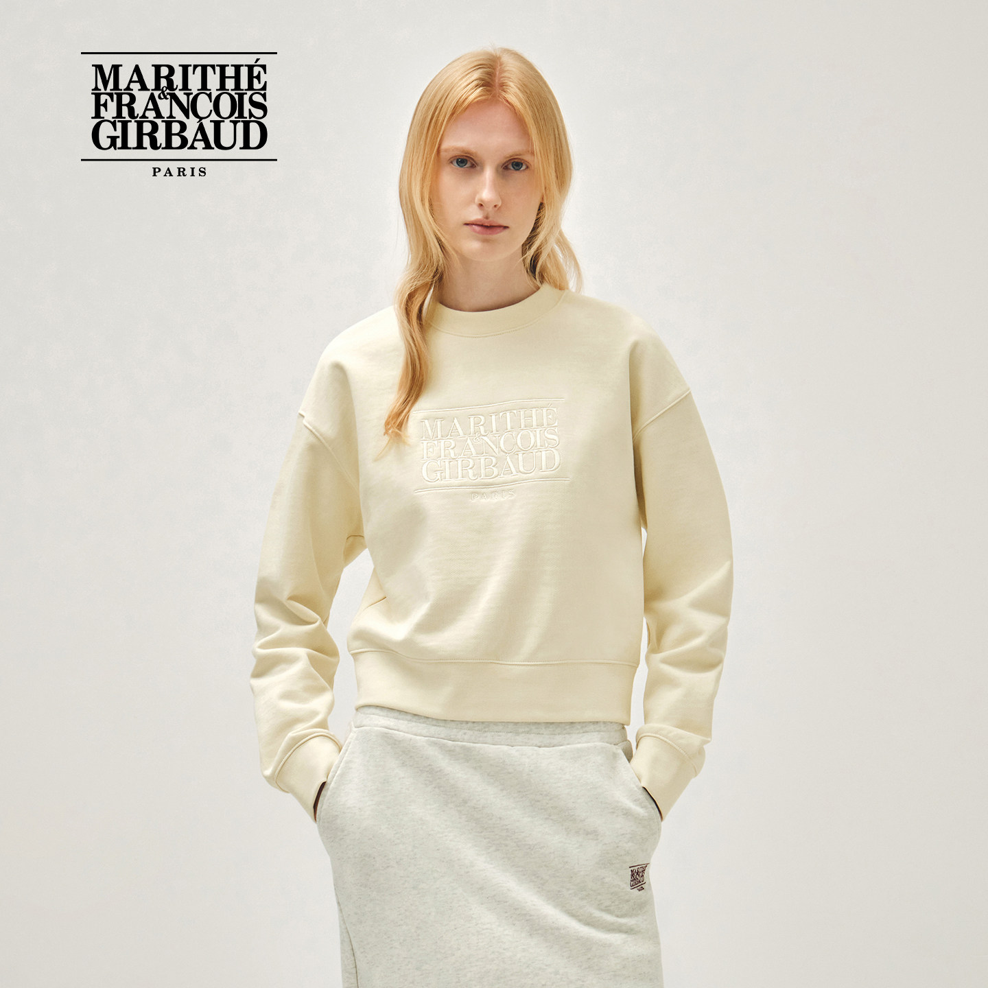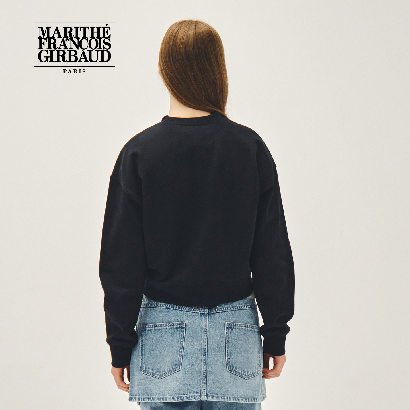 MARITHE女士经典 宽边拼接简约休闲刺绣上衣2026年春 LOGO短卫衣