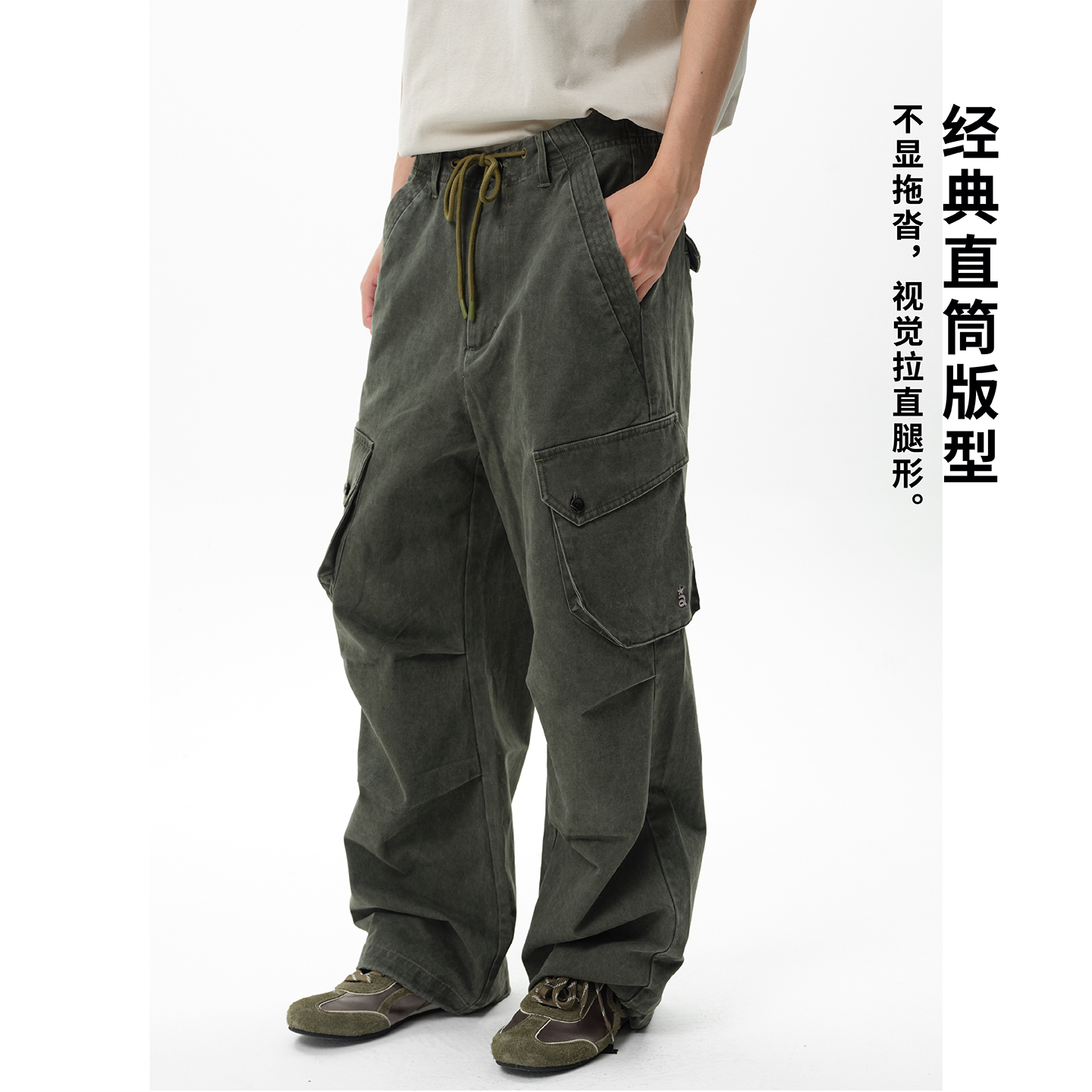 咆哮野兽 arch 纯棉做旧褶皱伞兵裤 直筒工装 男 roaringwild 长裤