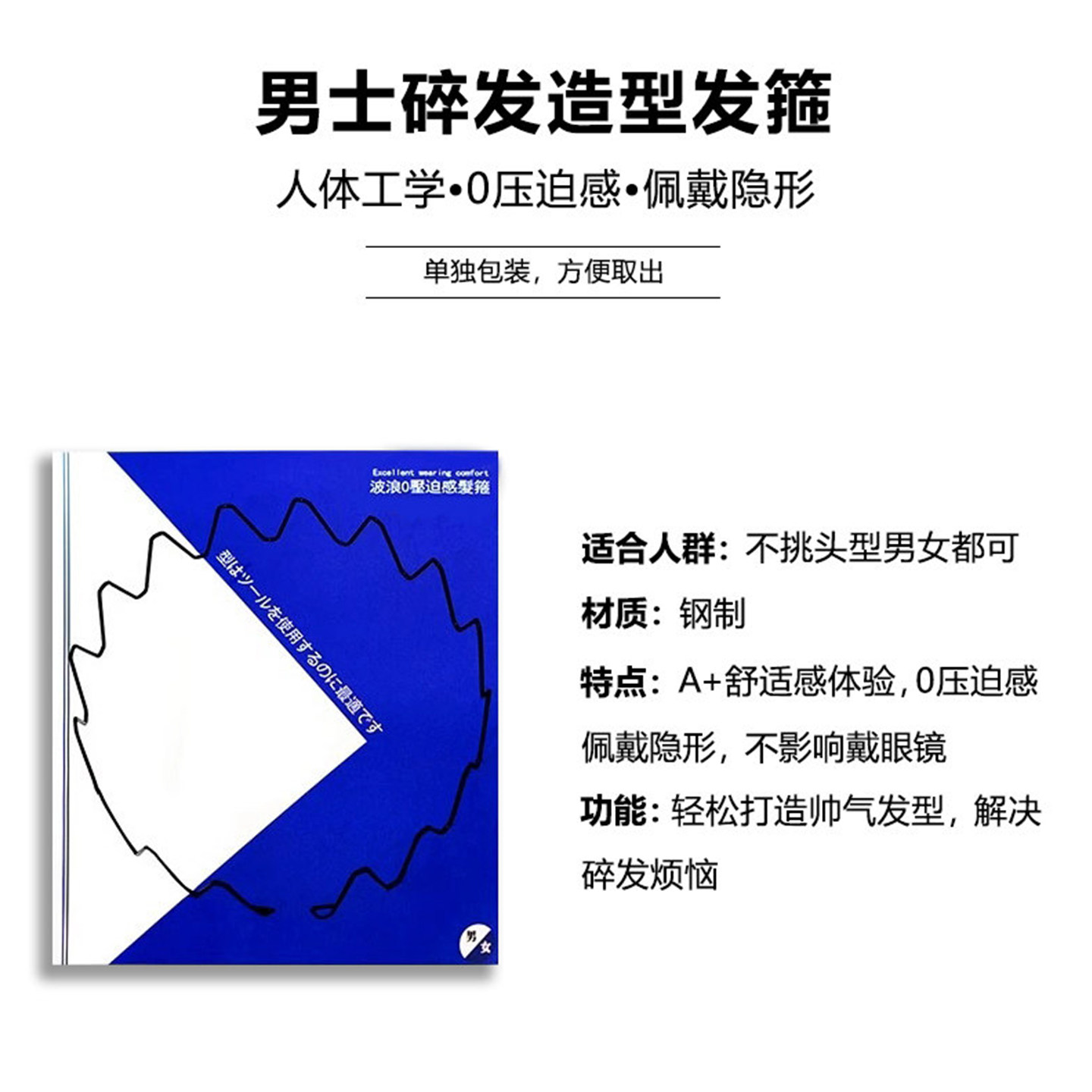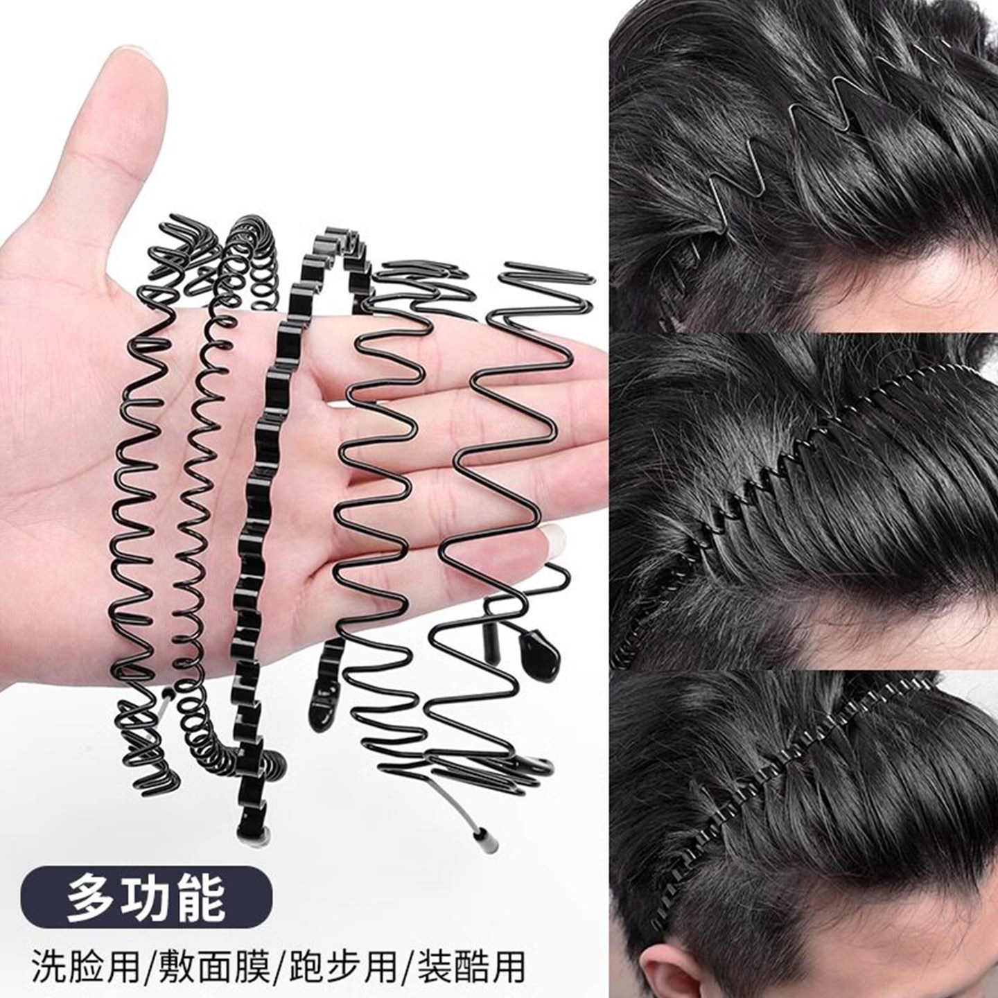 黑色金属隐形男士 发箍洗脸运动背头头箍男生不勒头束发压发发卡