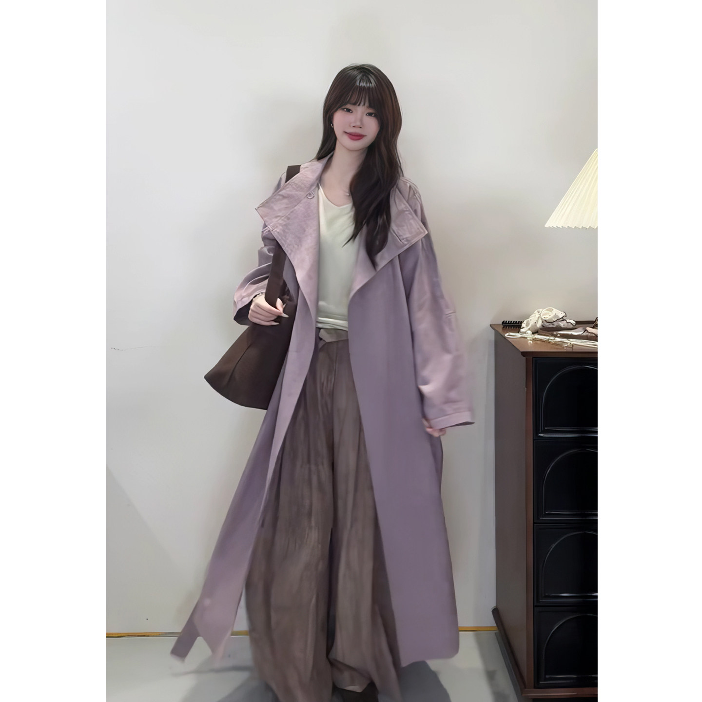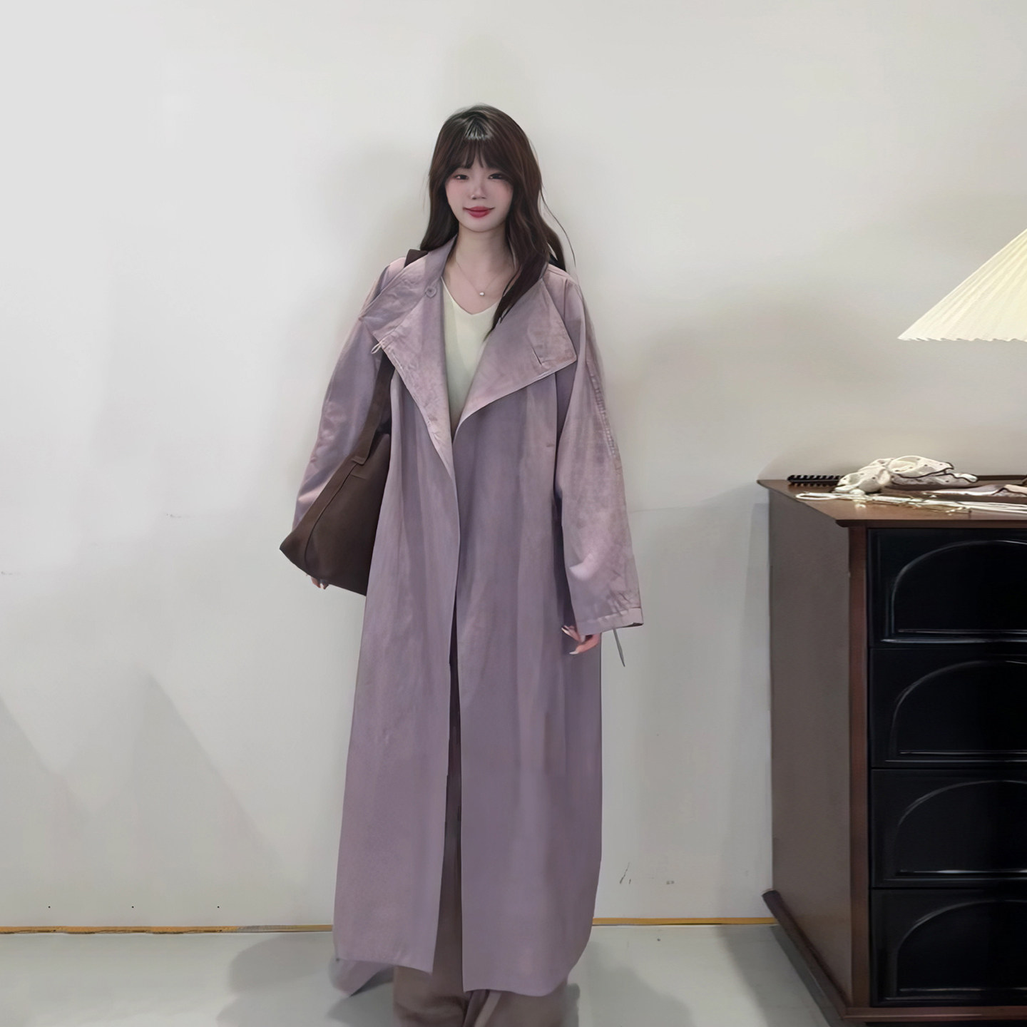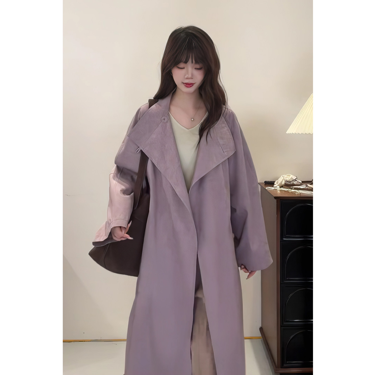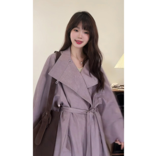 现货 紫芙知识分子风紫色高级感风衣外套女春秋纯色极简大衣长款