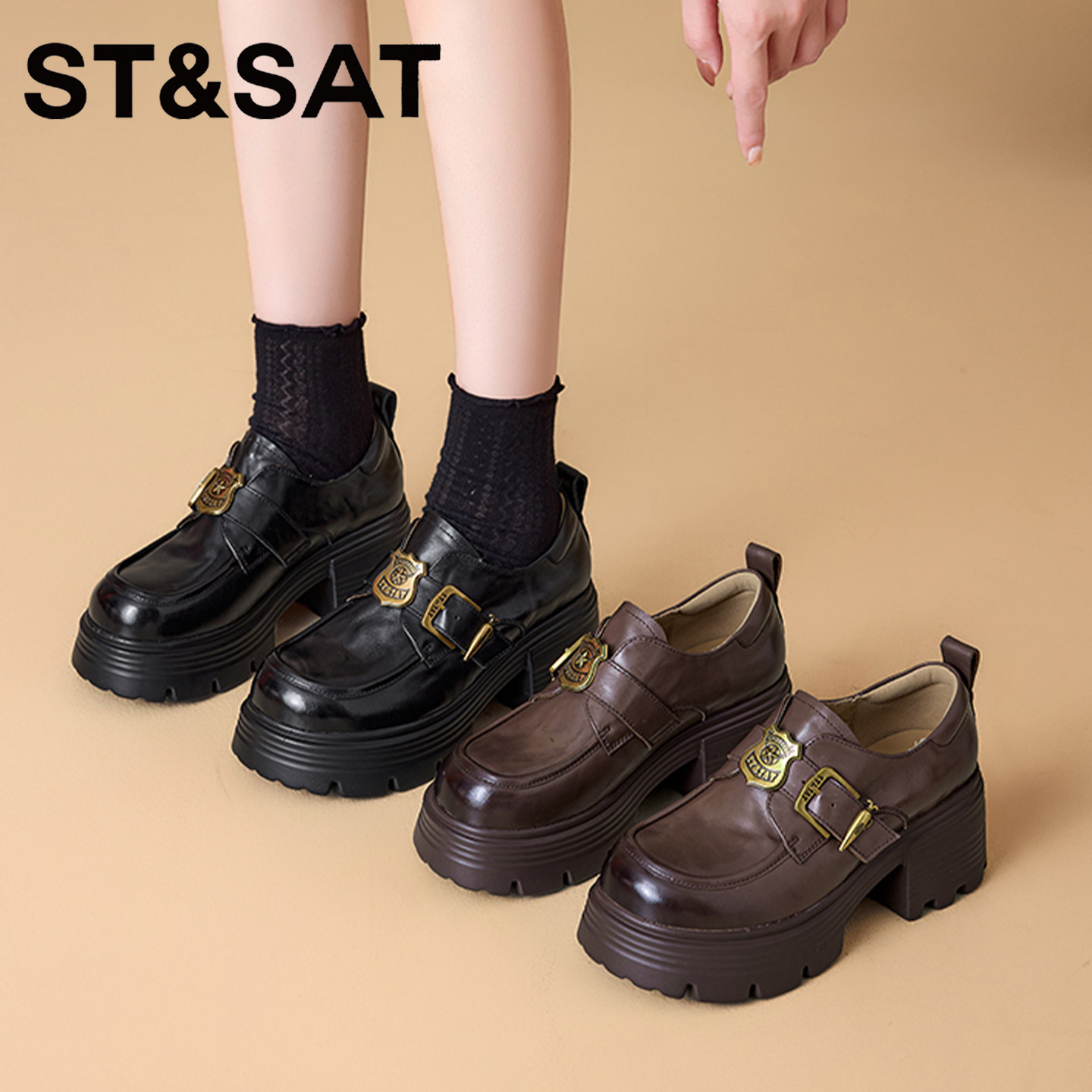 百搭小个子增高小皮鞋 时尚 女2026春秋新款 星期六英伦风厚底乐福鞋