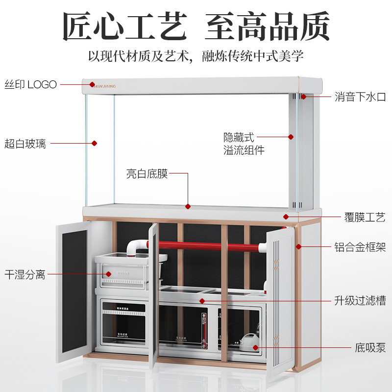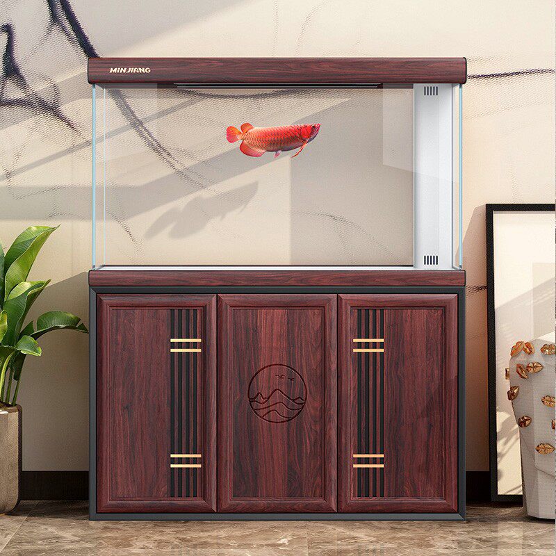 闽江中大型鱼缸水族箱客厅家用落地超白玻璃生态造景免换水龙鱼缸