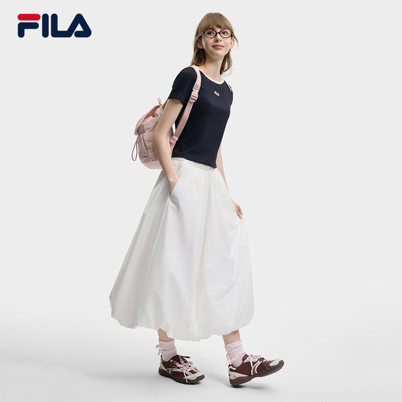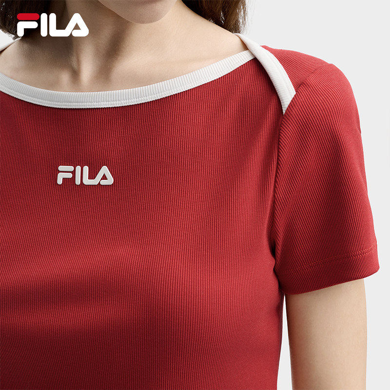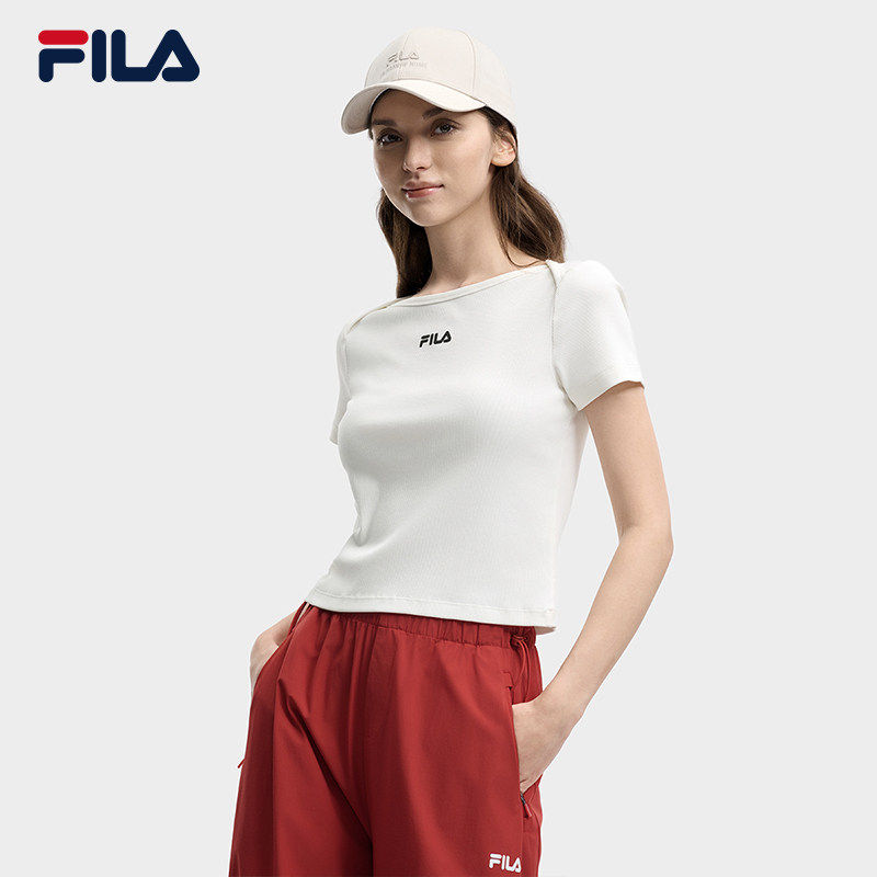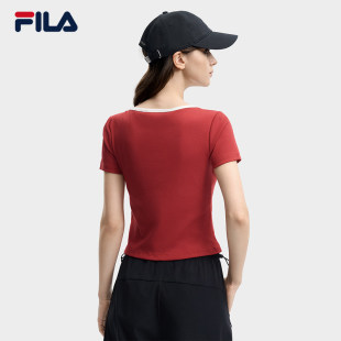 斐乐官方女子针织短袖 休闲简约显瘦修身 衫 新款 白T恤 2026夏季 FILA