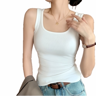 百搭吊带 外穿内搭打底遮副乳无袖 螺纹方领吊带背心女白色大码 修身