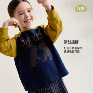 长袖 卡通印花插肩袖 允儿妈女童纯棉T恤儿童上衣 新款 宝宝2026春季