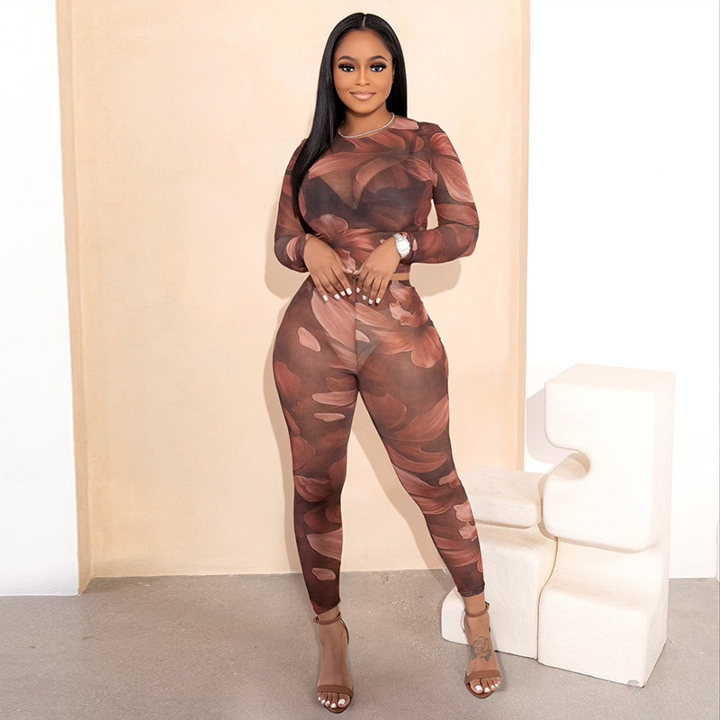 印花长袖 运动套装 上衣长裤 女高腰包臀显瘦休闲修身 套装 欧美风时尚