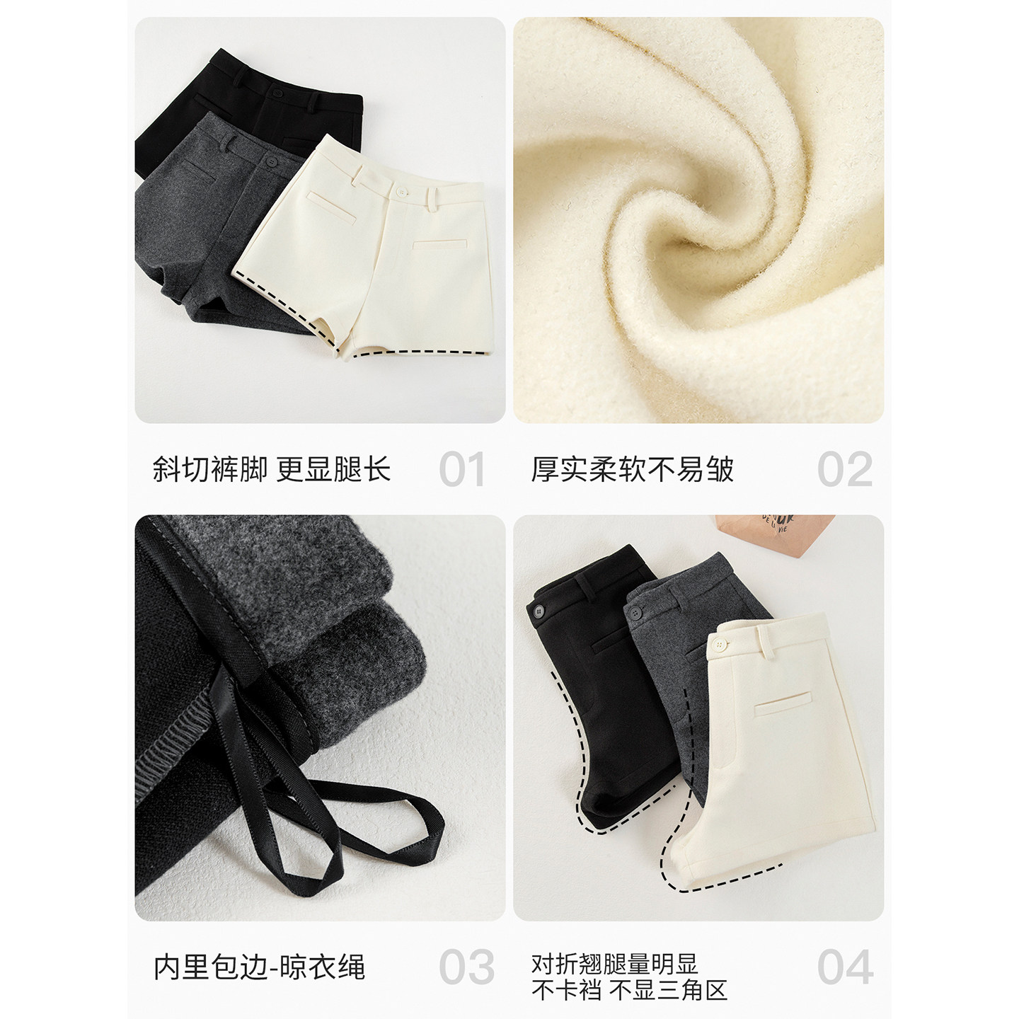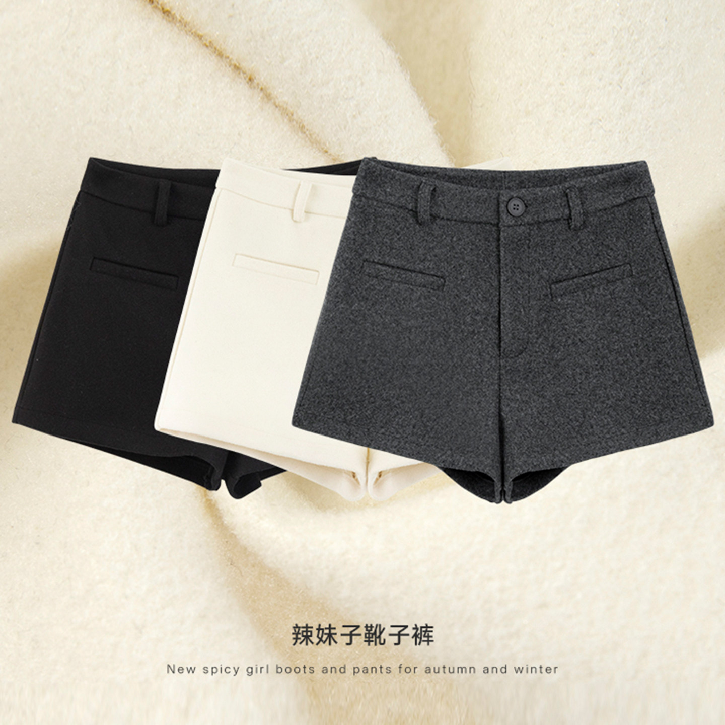 毛呢短裤 加厚休闲阔腿靴裤 子女2025新款 宽松a字修身 秋冬爆款 韩版