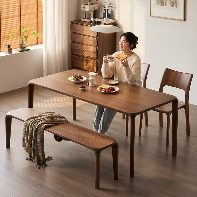 中古风实木岩板餐桌家用小户型2025设计师新款 白蜡复古长方形方桌