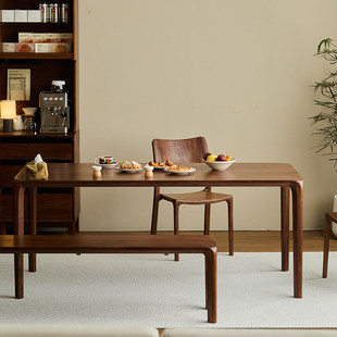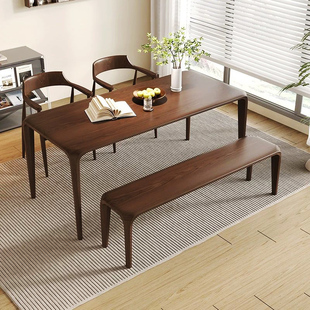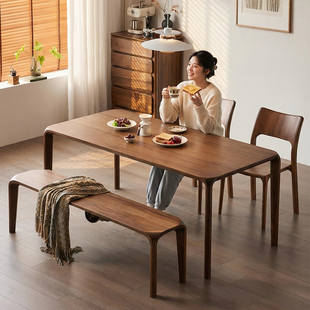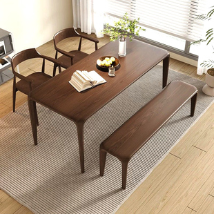 轻奢意式 极简小户型长方形家用复古风岩板餐桌椅组合实木吃饭桌子