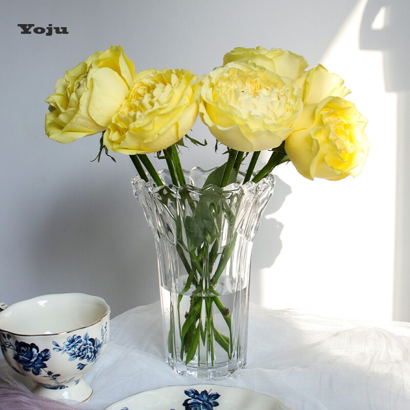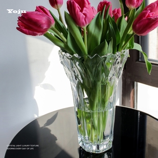 新品 北欧轻奢透明水晶玻璃花瓶高级感客厅餐桌插花摆件水培鲜花花