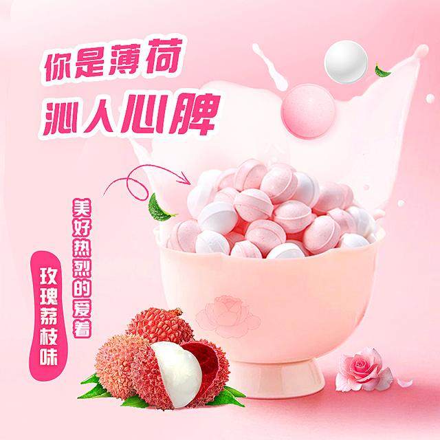 玫瑰荔枝茉莉青提香体糖清新口气约会接吻糖90g KISS PEARL