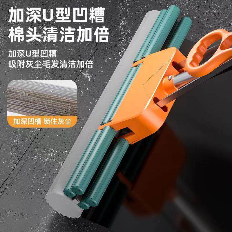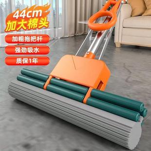 懒人吸水家用海绵拖把 不锈钢滚轮挤水拖地加大号胶棉拖把代