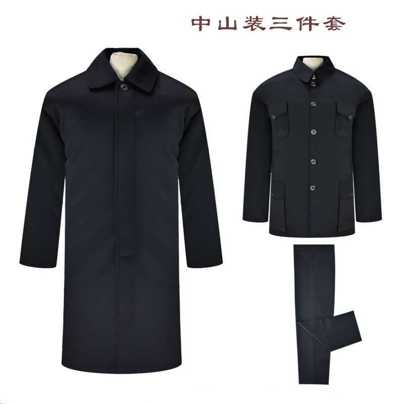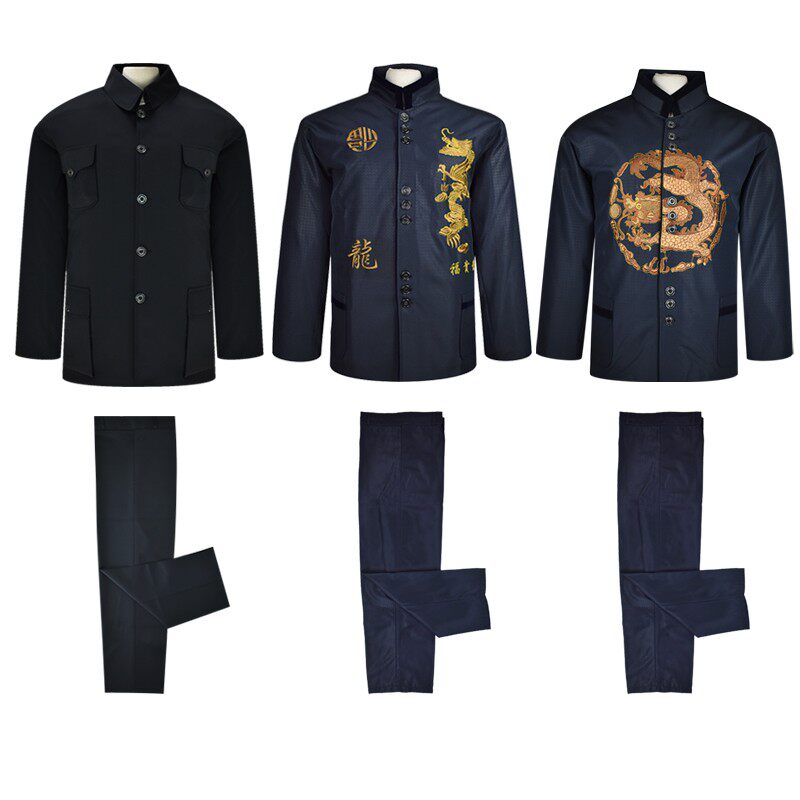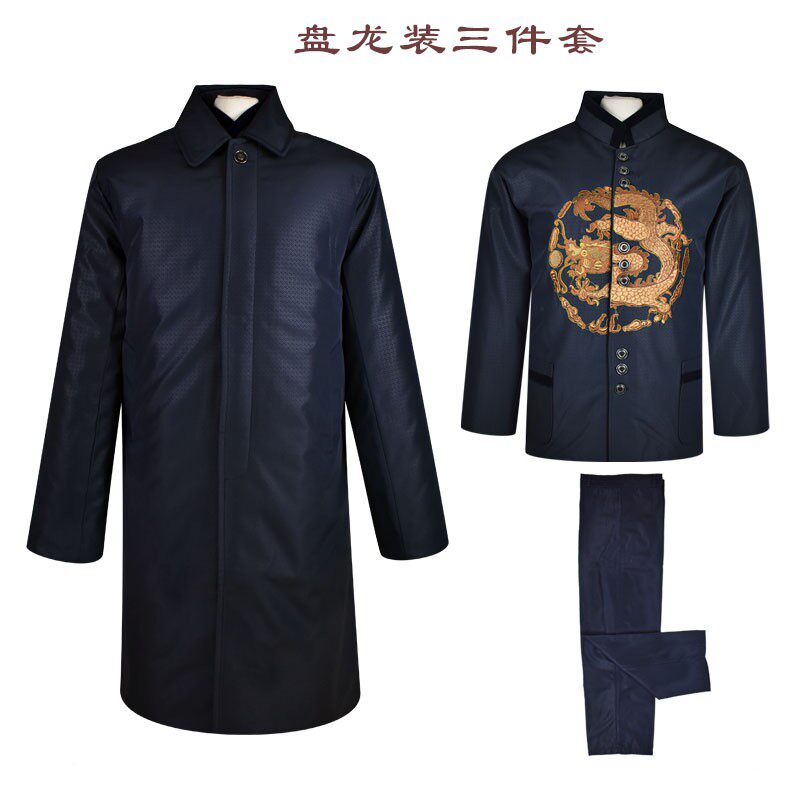 寿件冲喜 速发老衣男休闲中山装 三人套 大衣罩衣裤 殡葬用品 龙装
