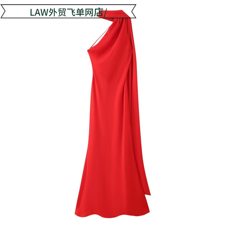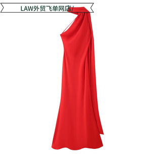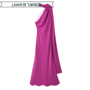 satin party deep neck dress春夏纯色挂脖丝缎质感连衣裙 Sexy