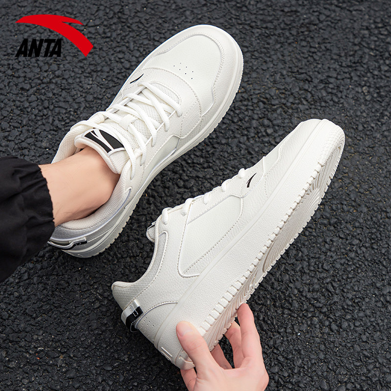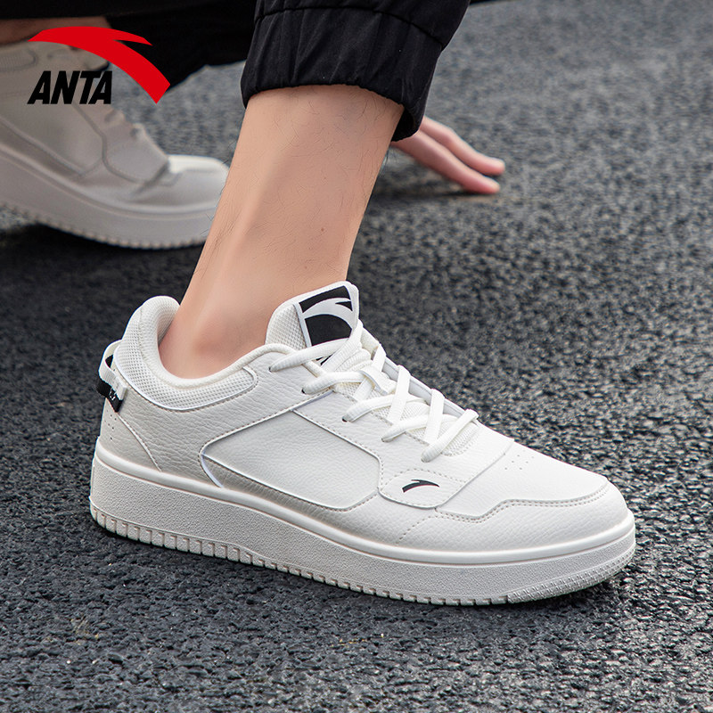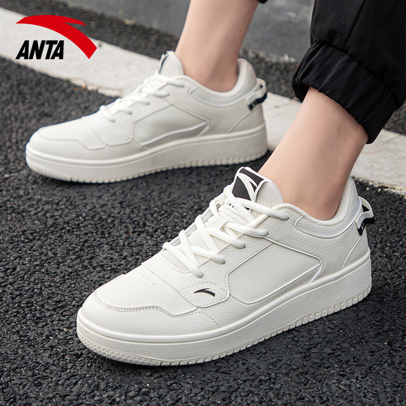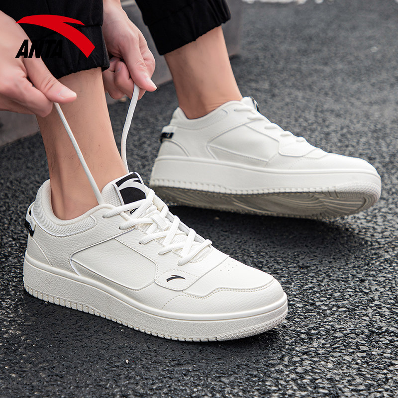 厚底皮面低帮学生小白鞋 安踏板鞋 男鞋 防泼水运动鞋 男休闲皮面正品