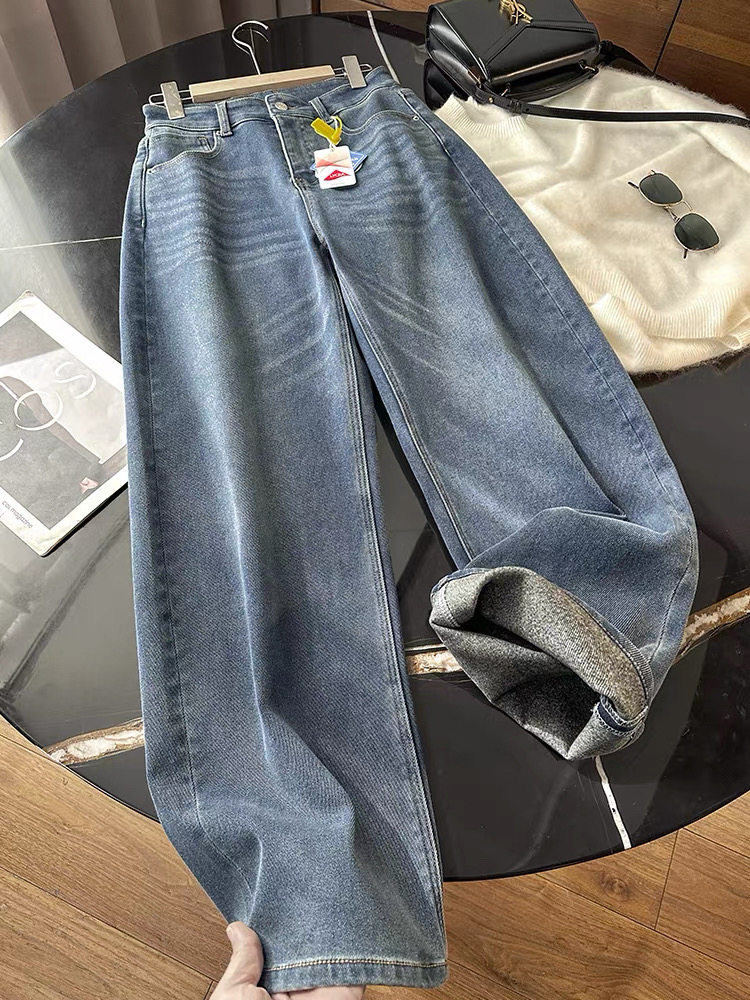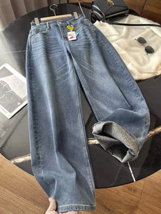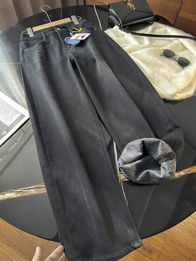 直筒加厚加绒植绒牛仔裤 保暖舒适王炸款 型巨好显瘦窄版 版 女 冬季