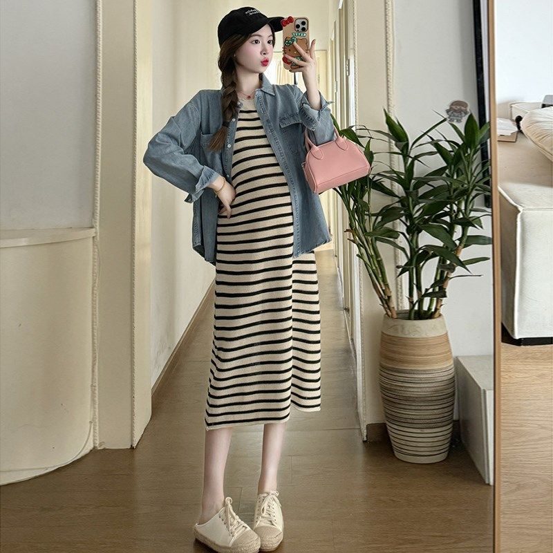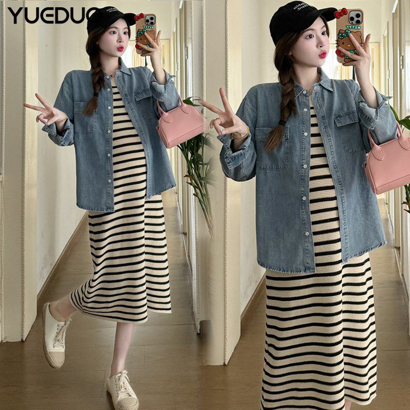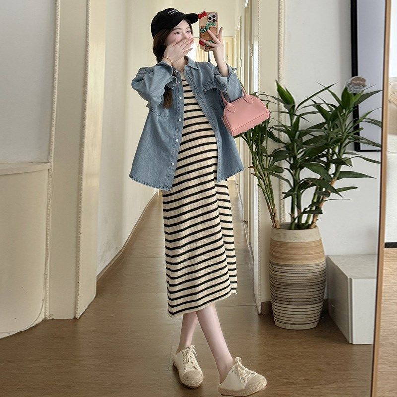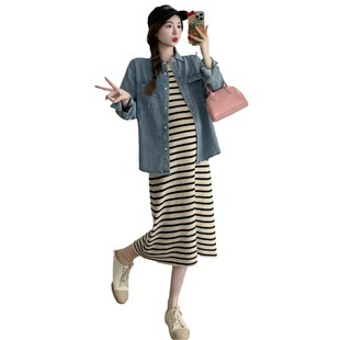 春装 新款 时尚 春季 潮妈上衣背心裙外穿两件套 孕妇连衣裙套装 孕妇装