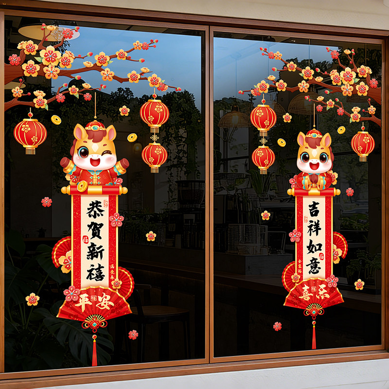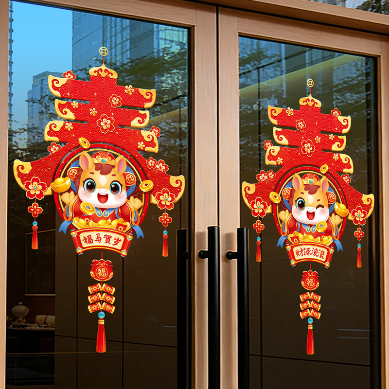窗贴 饰品过年布置新款 2026窗花马年静电贴新年装 饰玻璃贴纸春节装