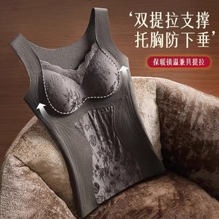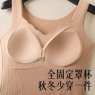 菇娘家德绒保暖背心女内搭冬带胸垫一体式 加绒保暖内衣 内衣新款
