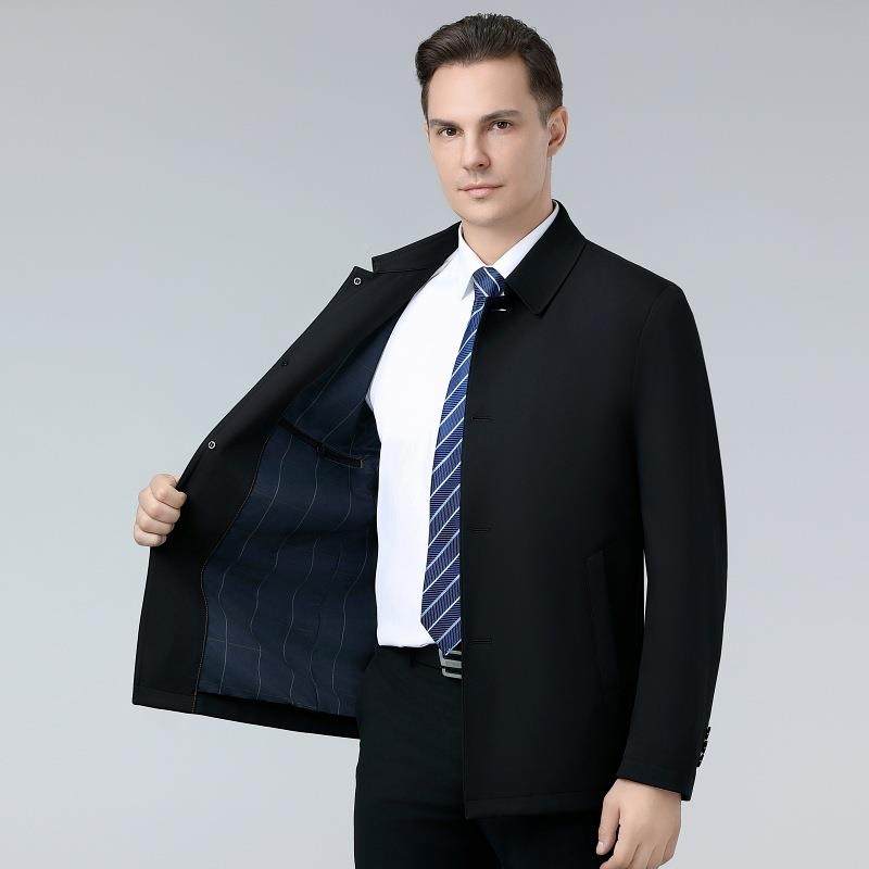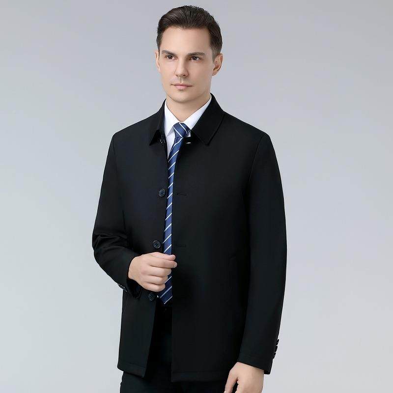 茄高夹端中老年商务干部痕百搭克外套爸爸无 克男春秋季 2166 F新款